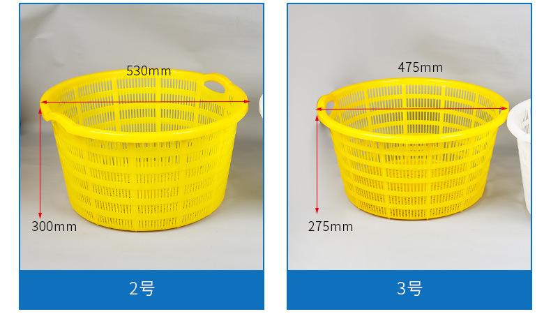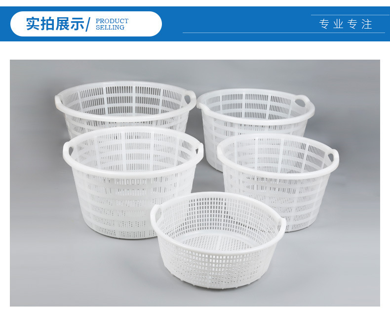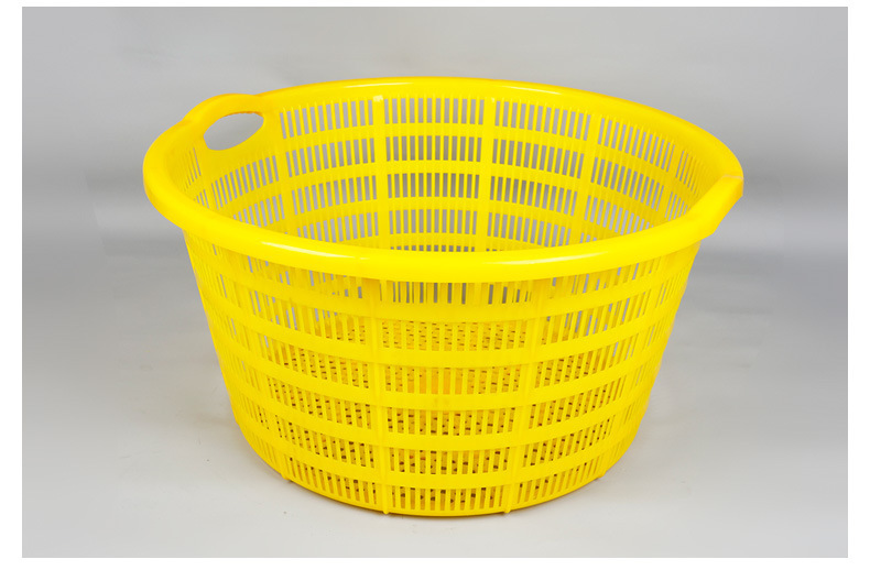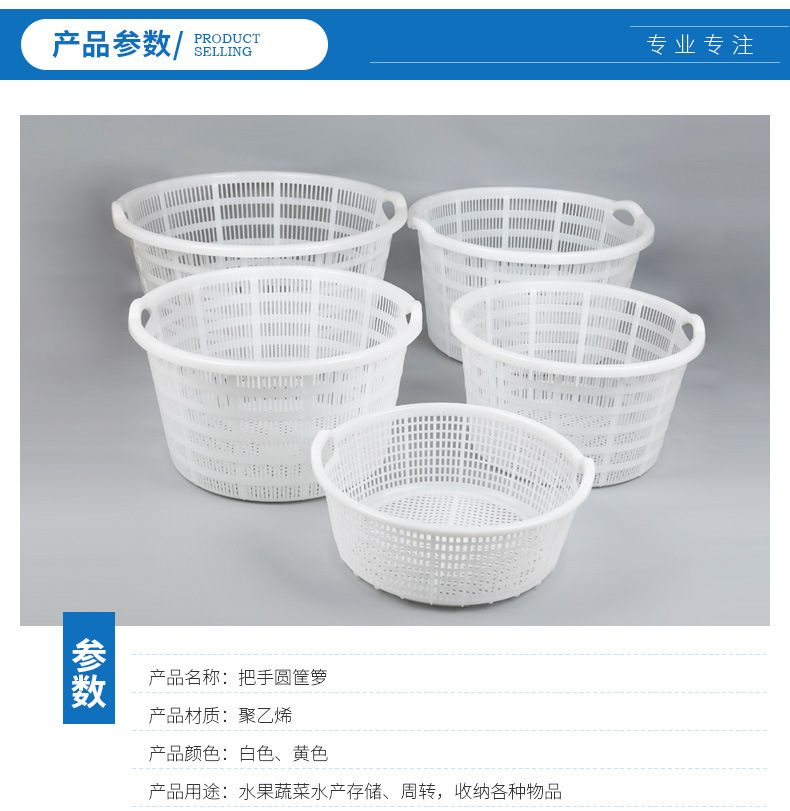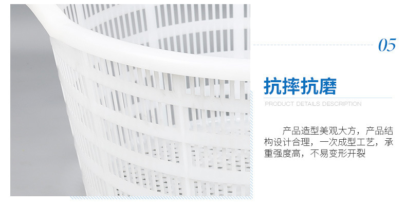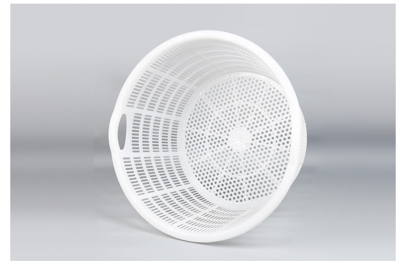 손잡이가 있는 둥근 바구니, 두꺼운 플라스틱 대형 흰색 원형 바구니, 수산물 운송 회전 바구니, 해산물, 야채 및 과일 운반 바구니
