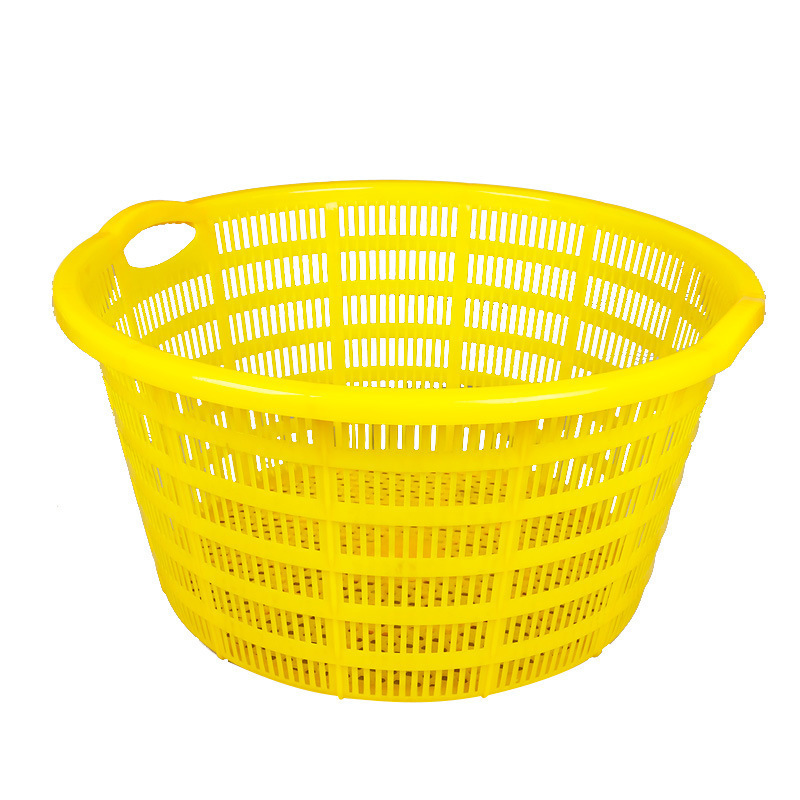 손잡이가 있는 둥근 바구니, 두꺼운 플라스틱 대형 흰색 원형 바구니, 수산물 운송 회전 바구니, 해산물, 야채 및 과일 운반 바구니스토어 가기
