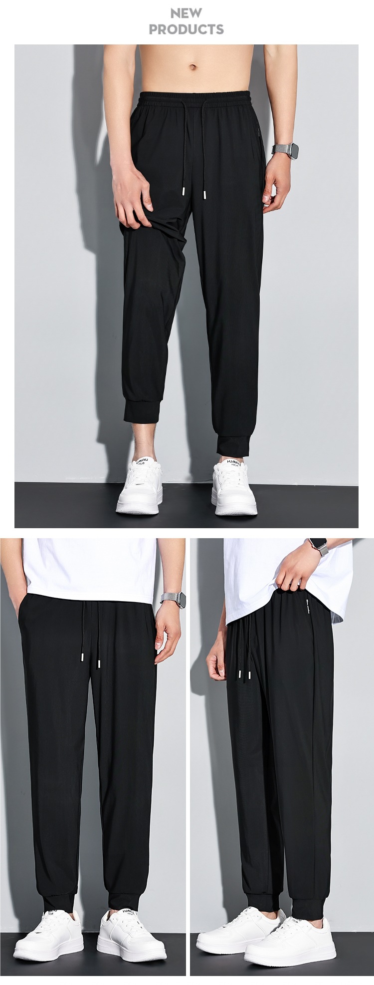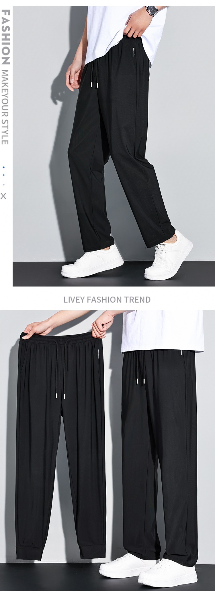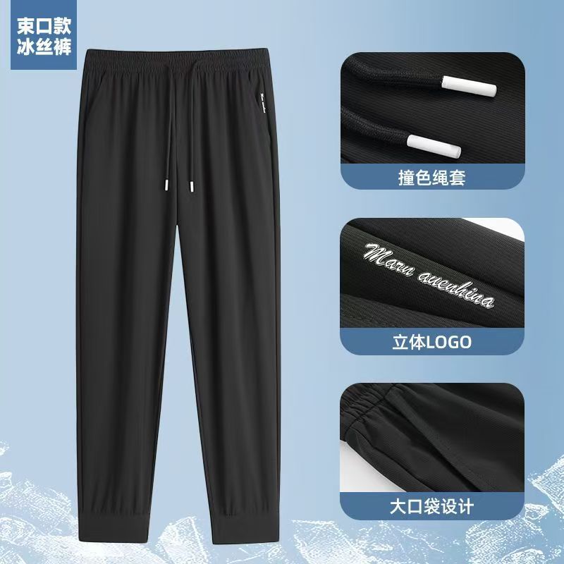 남성용 여름 아이스 실크 속건성 바지, 여성용 루즈한 얇은 통기성 스트레치 바지, 레깅스가 있는 캐주얼 에어컨 바지스토어 가기