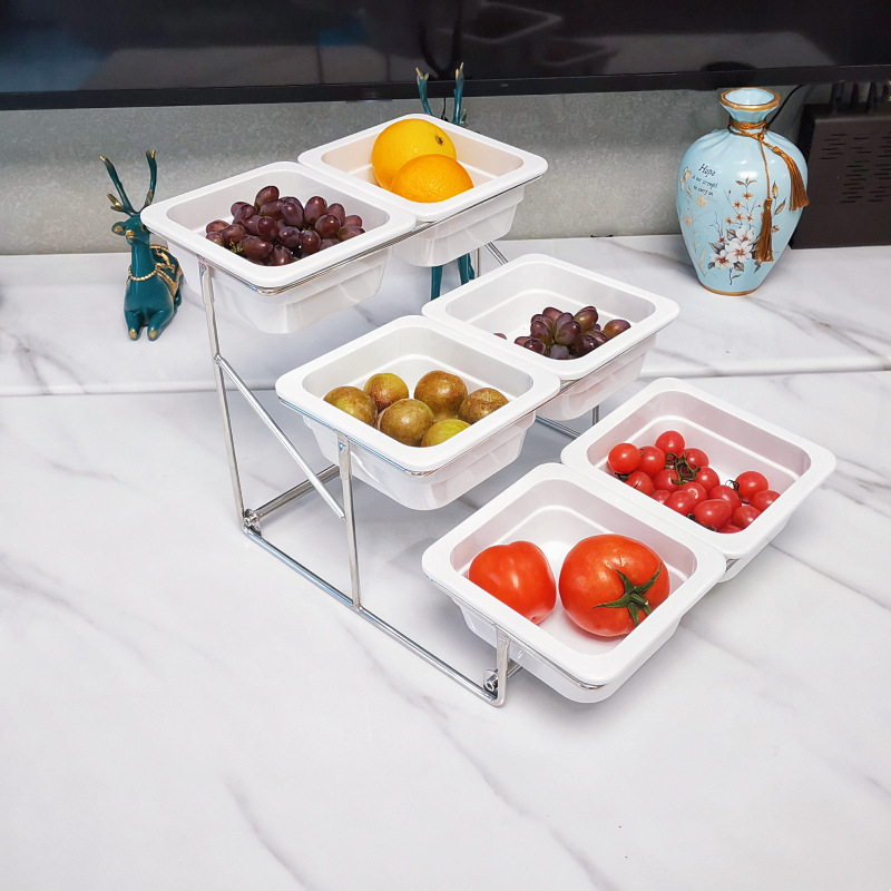 4칸, 멀티칸, 흰색 멜라민 뷔페 소스박스, 차가운 요리 및 과일 디스플레이 스탠드, 6칸 디너 플레이트, 칸막이 테이스팅 플레이트