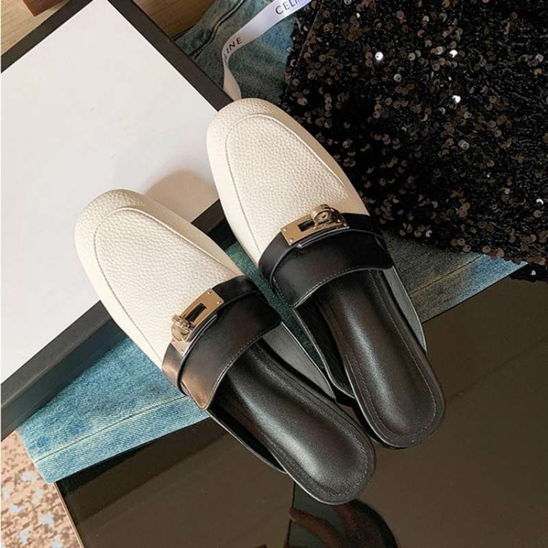 여름 아우터용 여성용 잠금 버클 발가락 반슬리퍼 2025 한국식 봄 신작 편안하고 패셔너블한 플랫 밑창 뮬 샌들