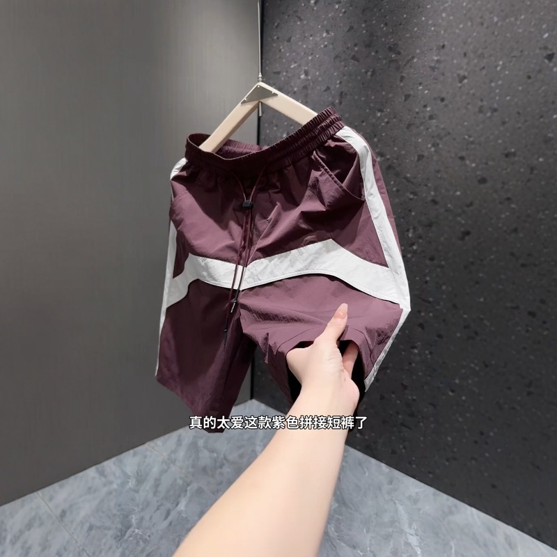 패션 Senwen 여름 남성 스플 라이스 대비 색상 디자인 탄성 허리 드로스트링 트렌디 캐주얼 반바지 9228스토어 가기