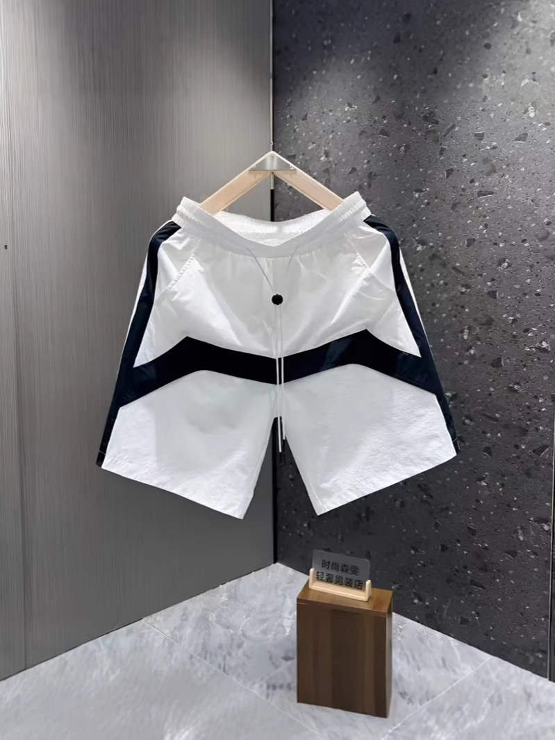 패션 Senwen 여름 남성 스플 라이스 대비 색상 디자인 탄성 허리 드로스트링 트렌디 캐주얼 반바지 9228