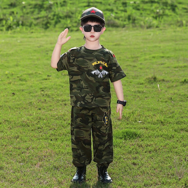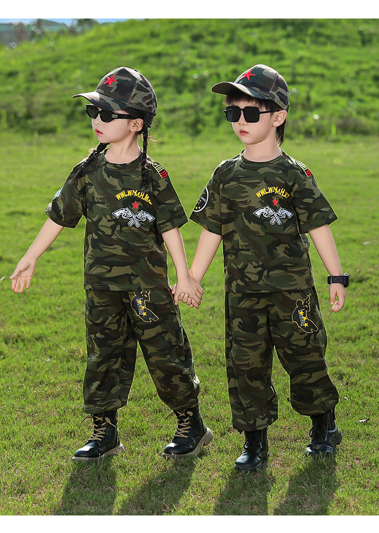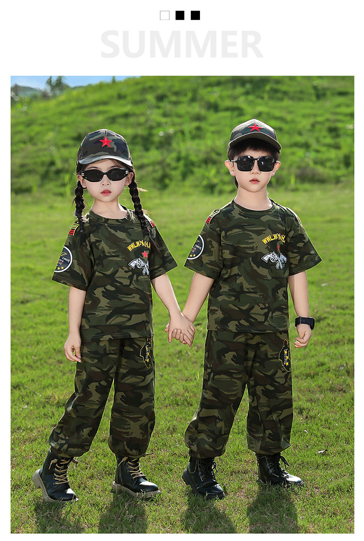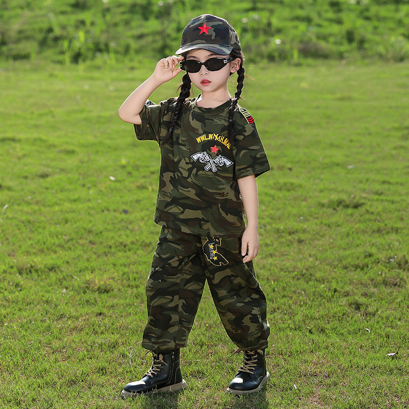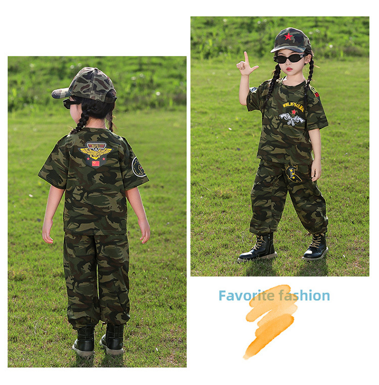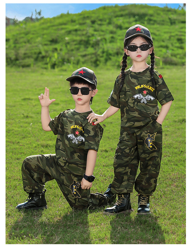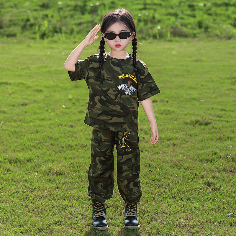 소년 여름 정장, 어린이 위장복, 2025 새로운 스타일 소녀 여름 옷, 어린이 멋지고 잘 생긴 군사 훈련 퍼포먼스 의류