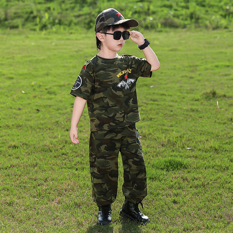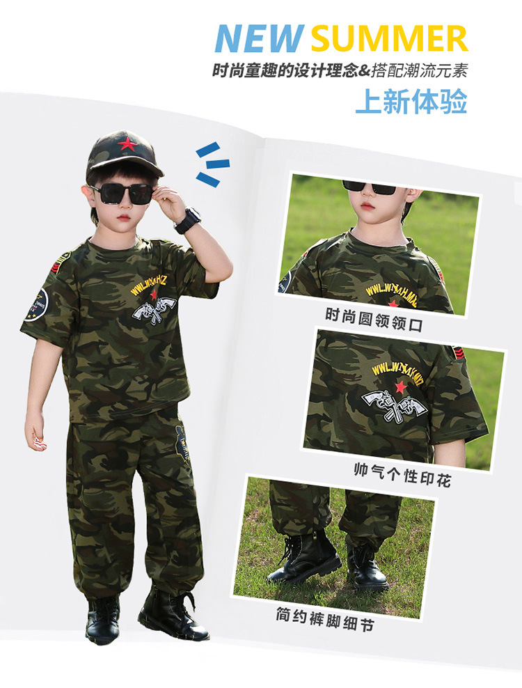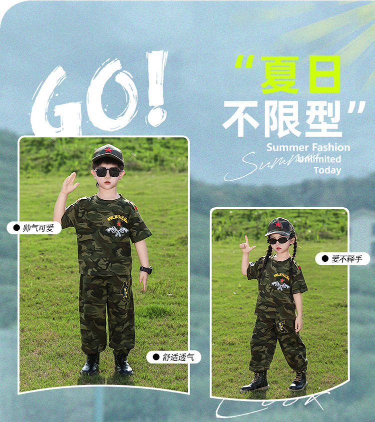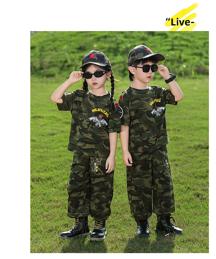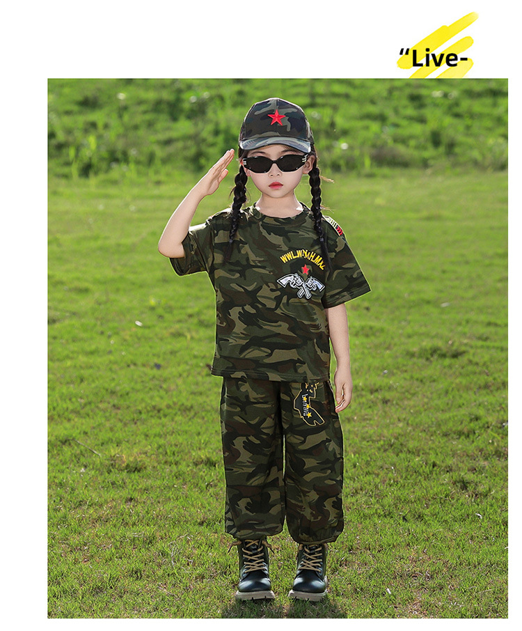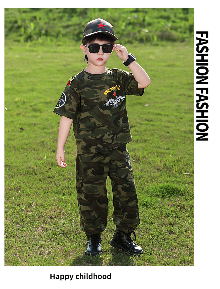 소년 여름 정장, 어린이 위장복, 2025 새로운 스타일 소녀 여름 옷, 어린이 멋지고 잘 생긴 군사 훈련 퍼포먼스 의류스토어 가기