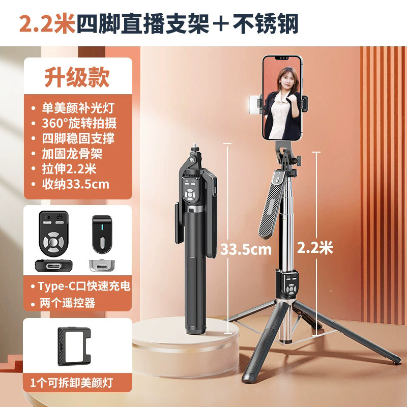 관광 휴대용 야외 라이브 방송 휴대 전화 홀더 셀카 스틱 손떨림 방지 확장형 블루투스 셀카 스틱 2.2m 슈퍼 롱스토어 가기