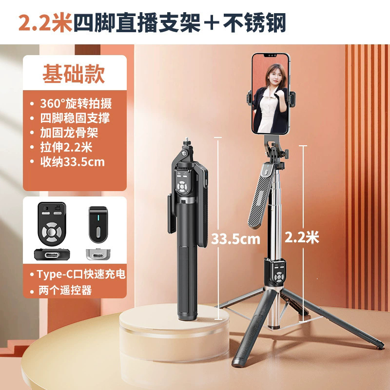 旅游便携户外直播手机支架自拍杆防抖可伸缩蓝牙自拍杆2.2米超长