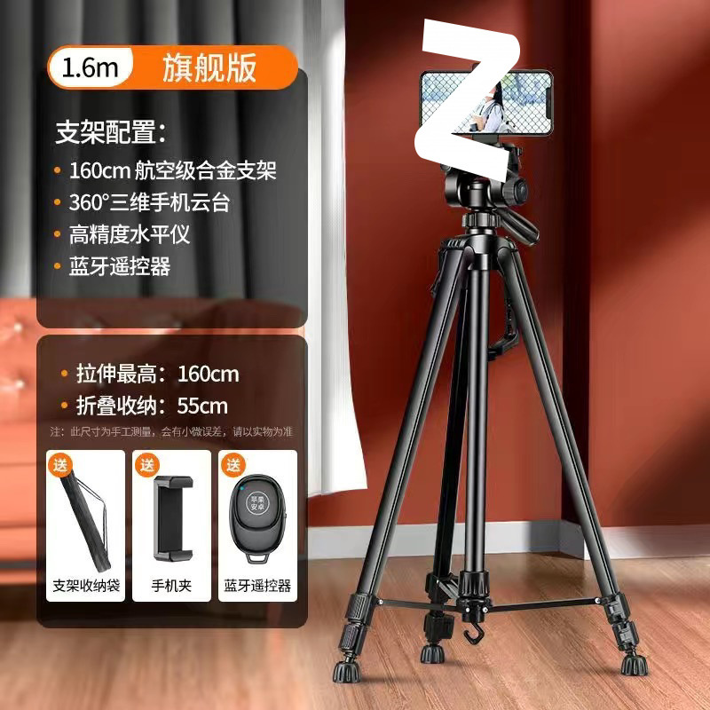 • 1.6m 카메라 및 휴대폰용 범용 삼각대 - 삼각대 + 휴대폰 클립 + 보관 가방 + 블루투스 리모컨