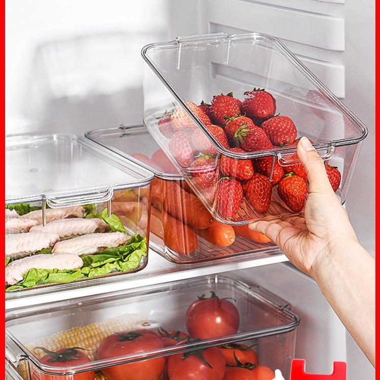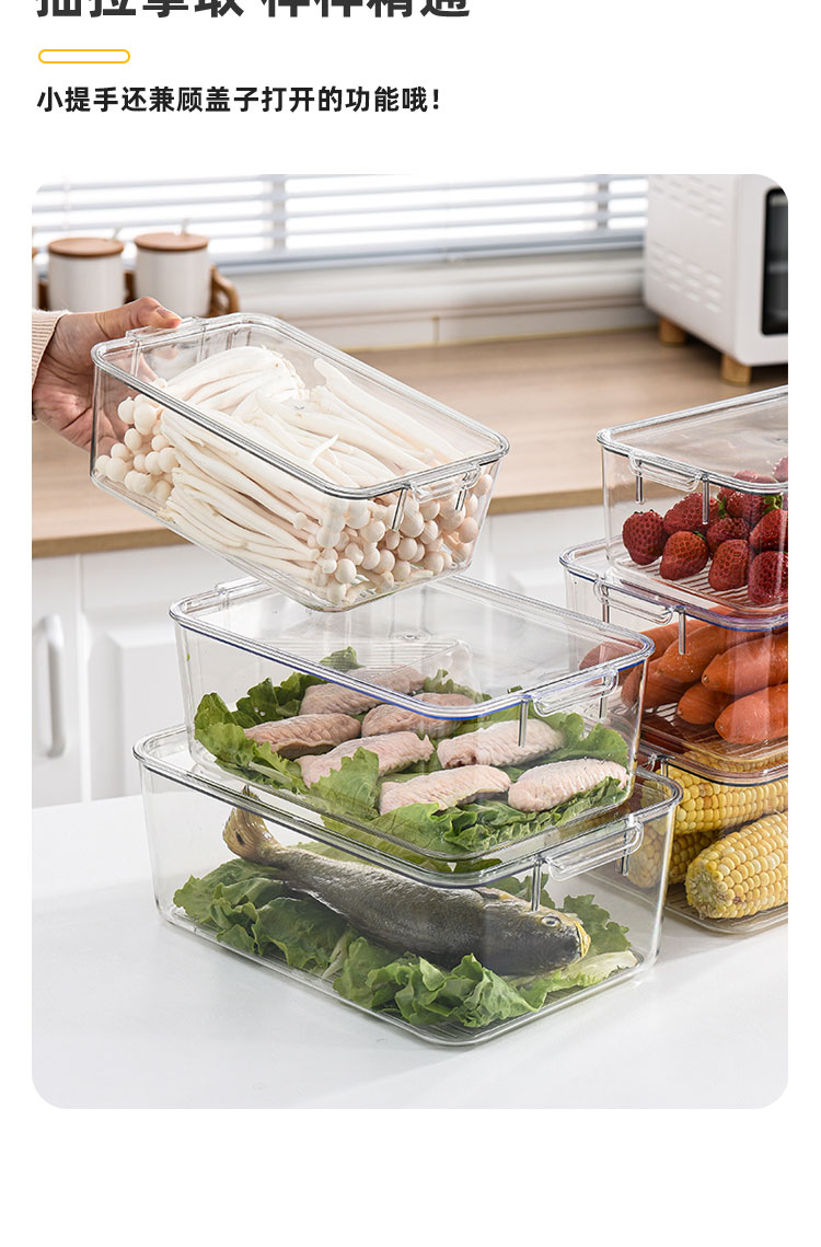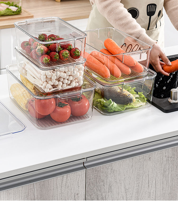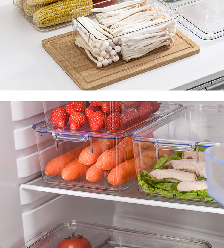 냉장고 보관 상자, 냉동 과일 및 야채 밀봉 상자, 뚜껑이 있는 투명 플라스틱 사각형, 가정용 및 상업용 대형스토어 가기