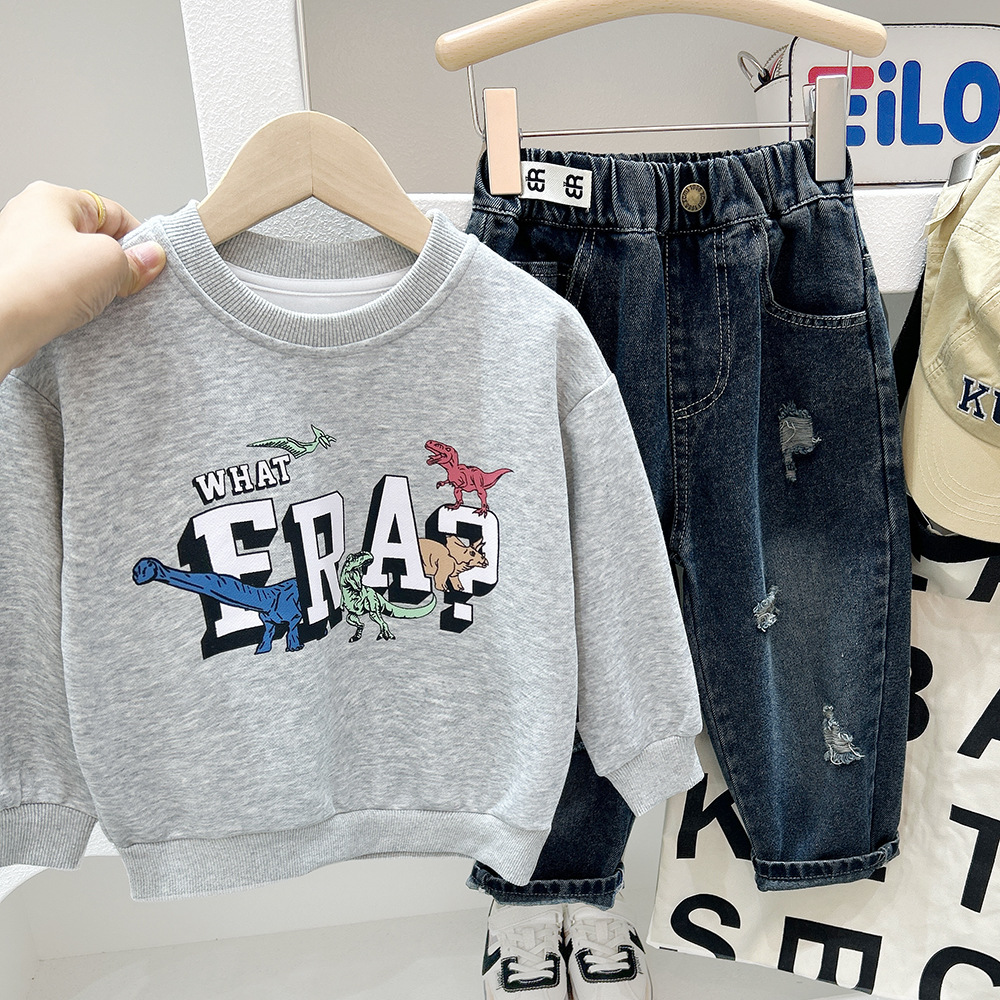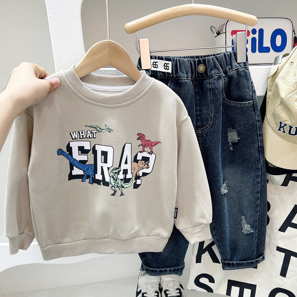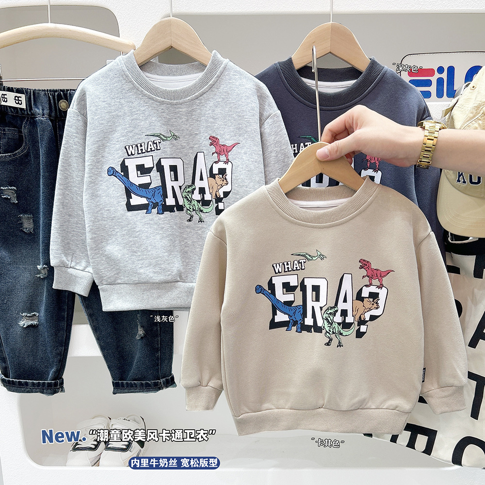 남아용 스웨트 셔츠 2025 봄, 가을 새로운 스타일 중대형 아동 가을 라운드 넥 긴팔 탑 아우터 가을 아동용 바닥 셔츠스토어 가기
