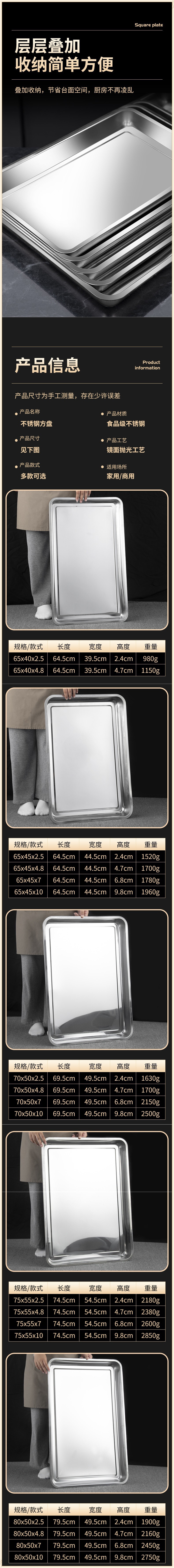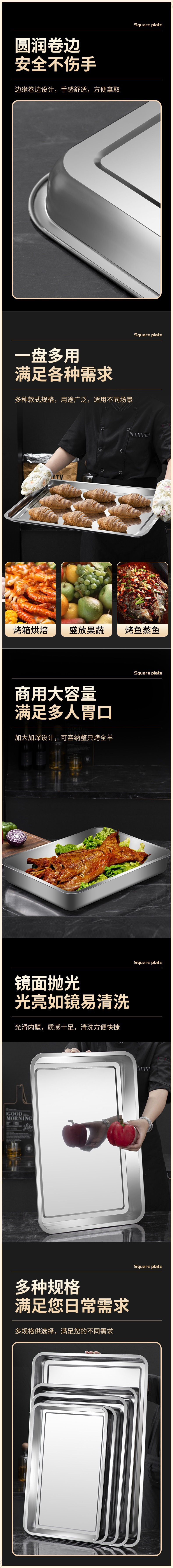 사각 접시 스테인레스 스틸 접시 직사각형 찜 밥 접시 바베큐 접시 상업용 가정용 철 접시 저녁 식사 접시 접시 트레이