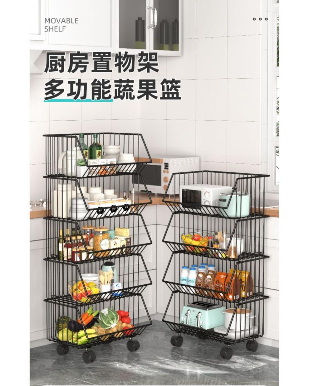 주방 보관함 다층 바닥에서 천장까지 가정용 이동식 트롤리 과일 및 야채 바구니 스낵 장난감 보관함