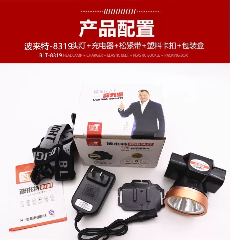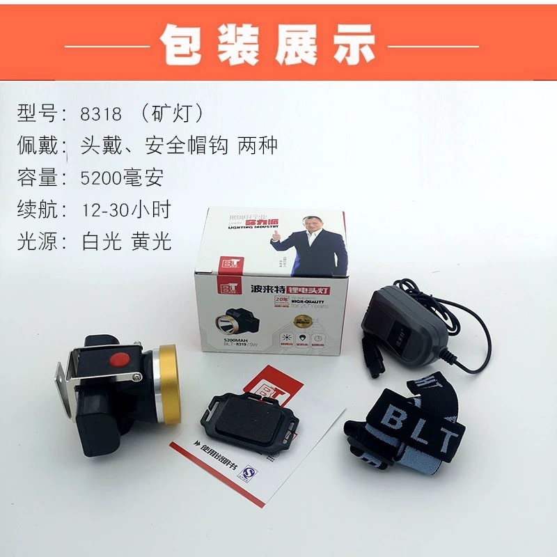 Bolite 스포츠 야외 리튬 전기 헤드 라이트 8319 강한 빛과 긴 배터리 수명 충전식 안전 헬멧 지하 방수 광부 램프