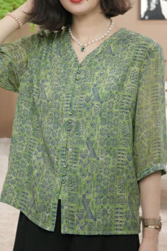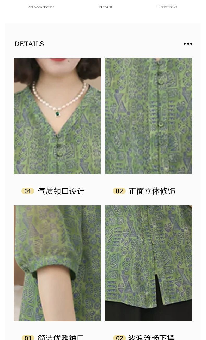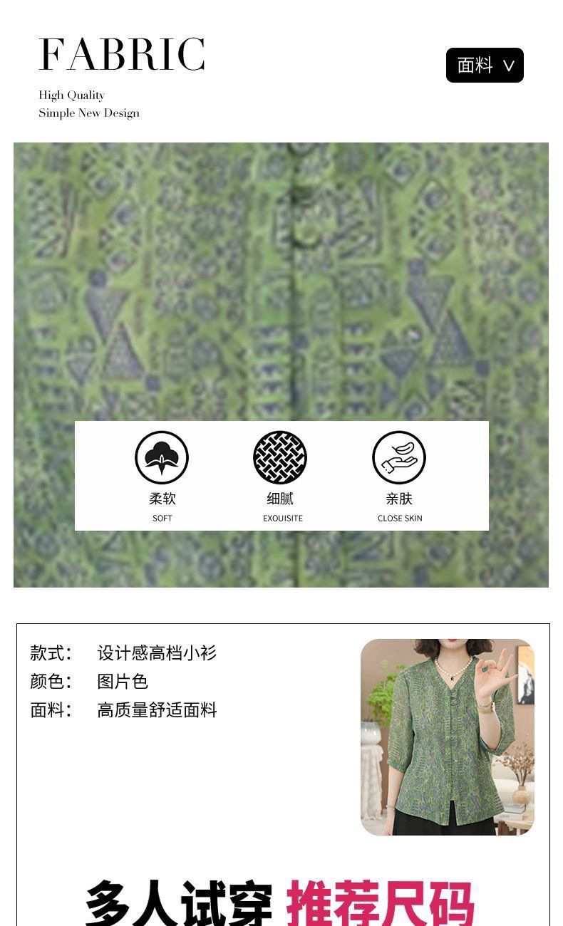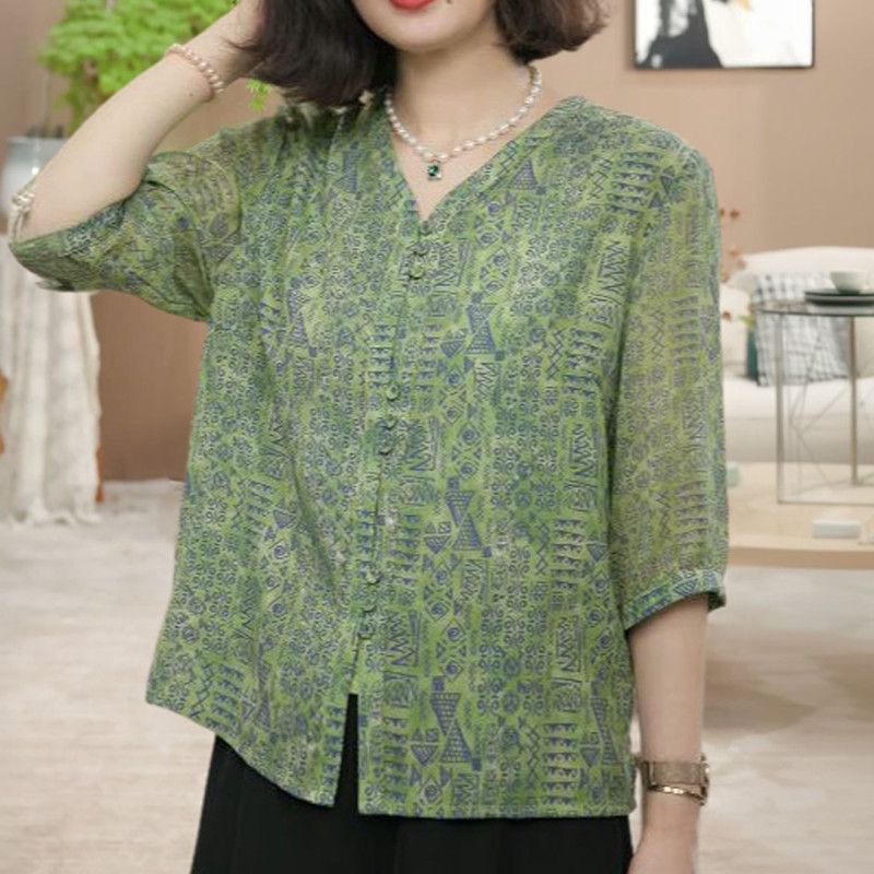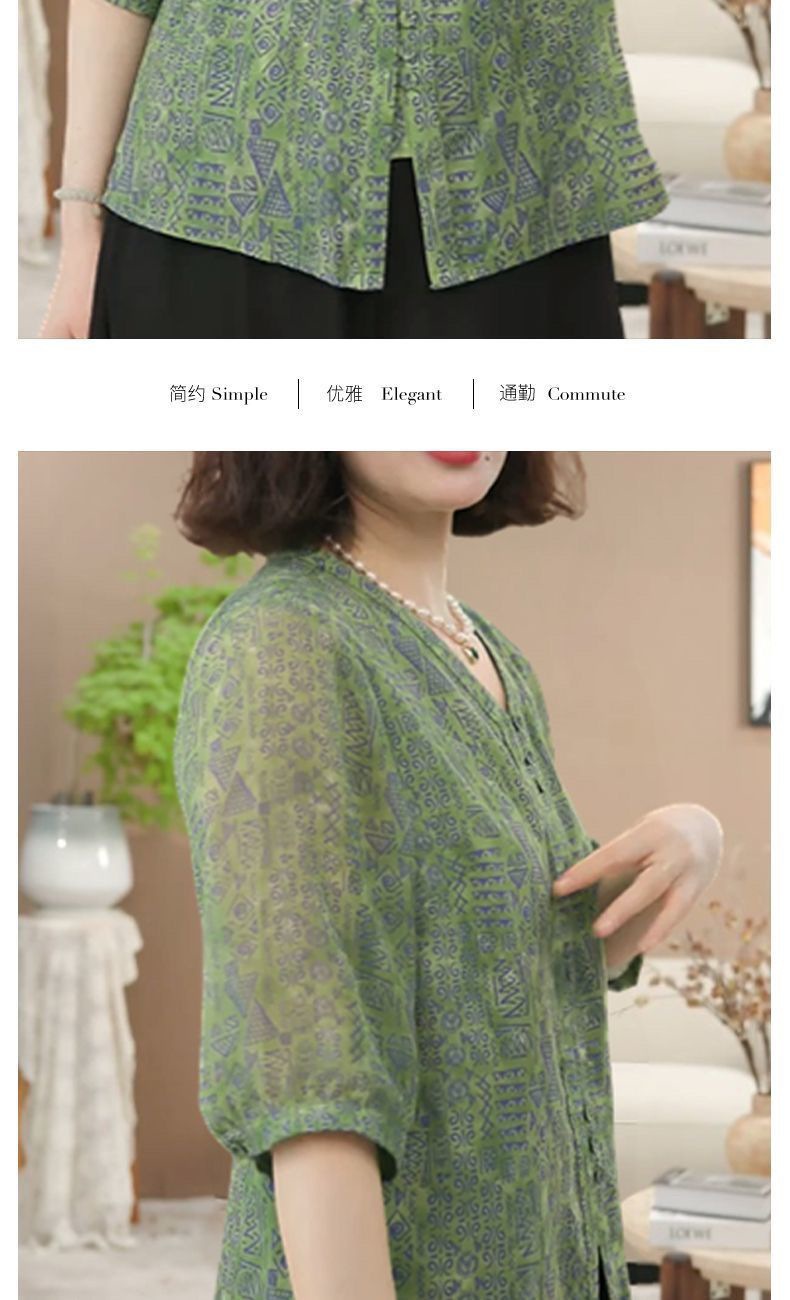 여름 신상 7부소매 프린트 셔츠, 여성용 미드슬리브 셔츠, 엄마복, 플러스 사이즈 여성용 슬리밍 쉬폰 셔츠스토어 가기
