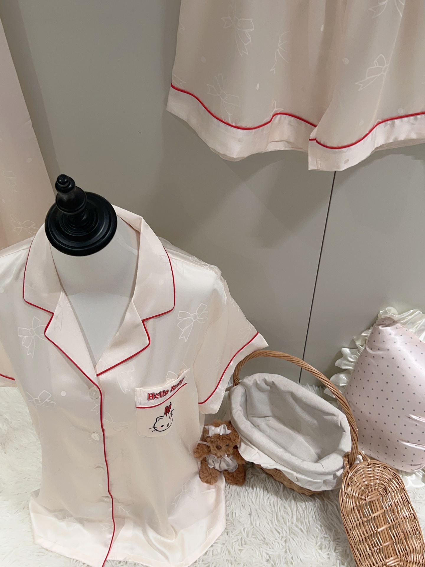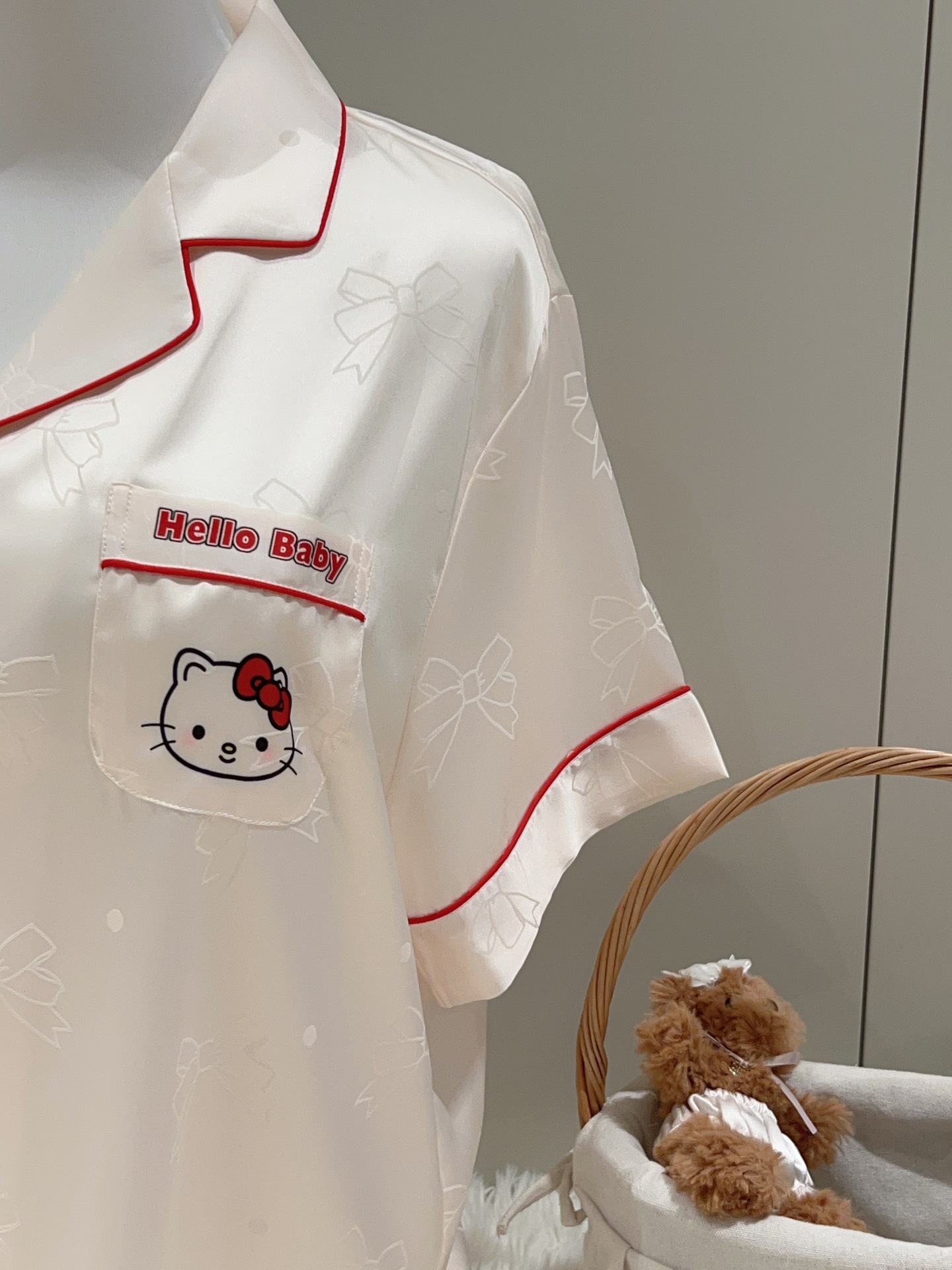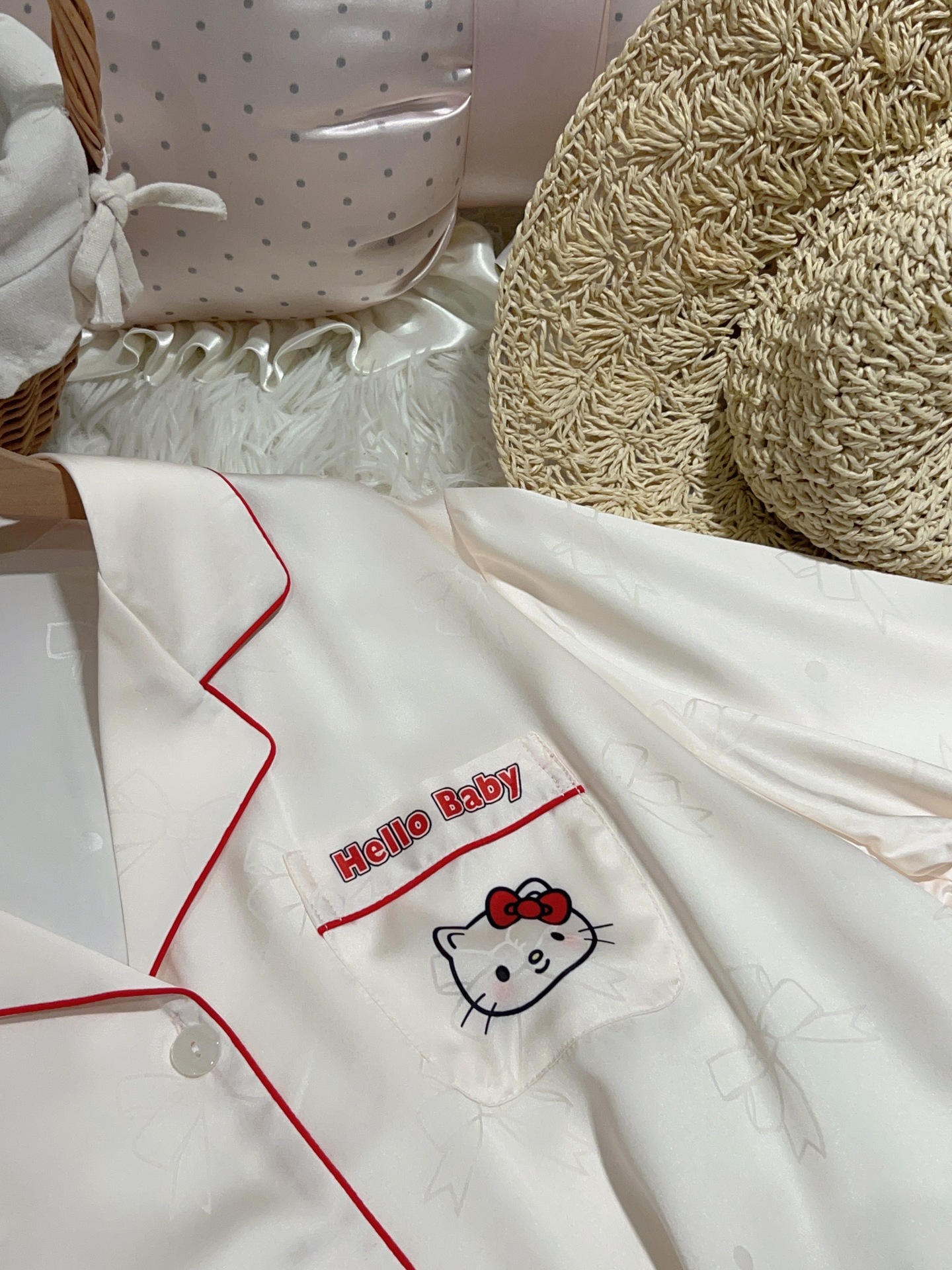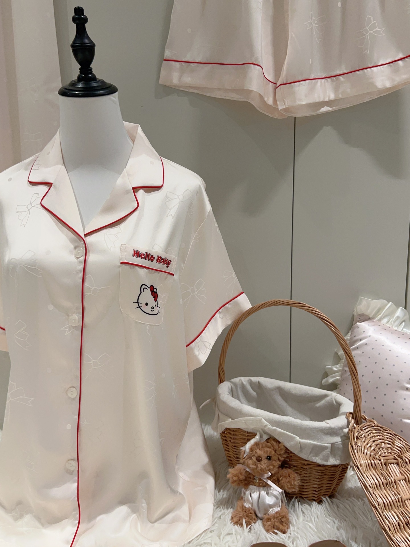 여성용 잠옷 여름 얇은 긴팔 바지 얼음 실크 2025 새로운 기능 스타일 KT 고양이 3 피스 홈웨어 세트스토어 가기