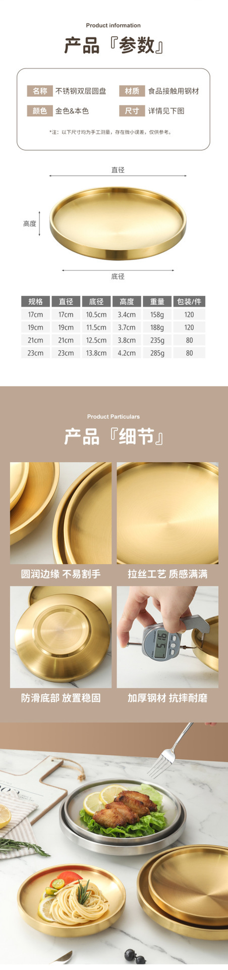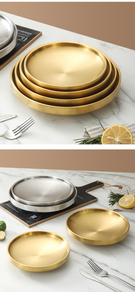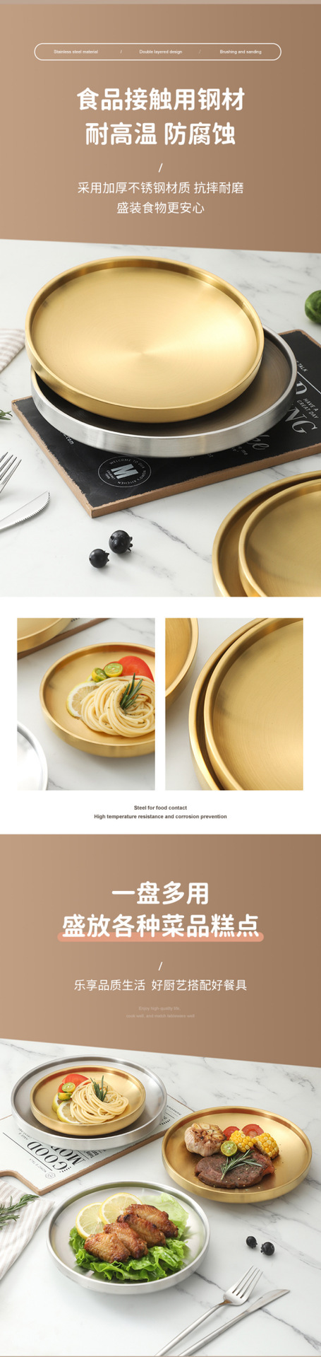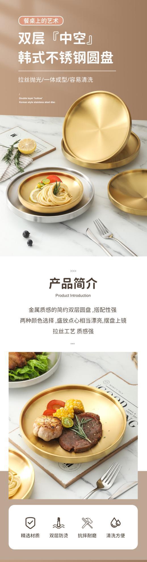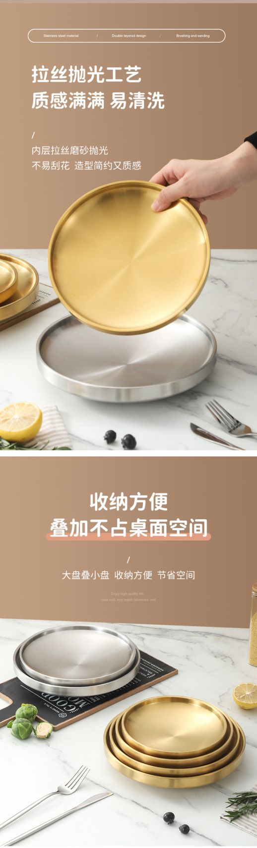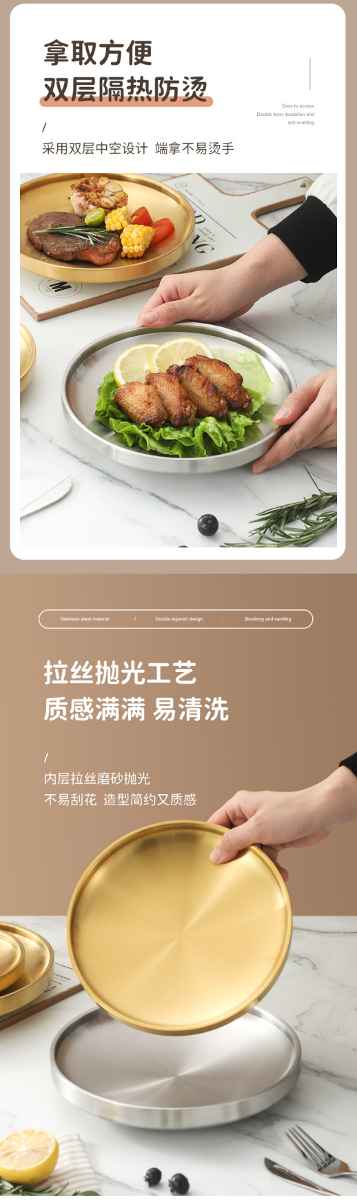 304 스테인레스 스틸 더블 레이어 바베큐 플레이트 골드 화상 방지 준비 접시 뼈 접시 원형 접시 스테이크 접시 서양 음식 접시스토어 가기