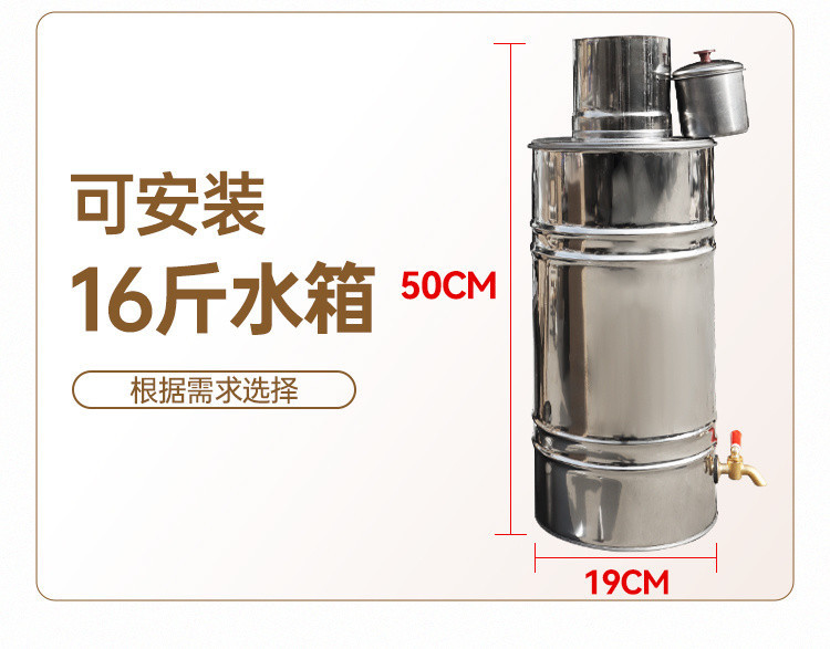 • 스토브 + 파이프 5m개 + 부속품 주전자 + 뚜껑이 있는 냄비 물탱크 - 소형
