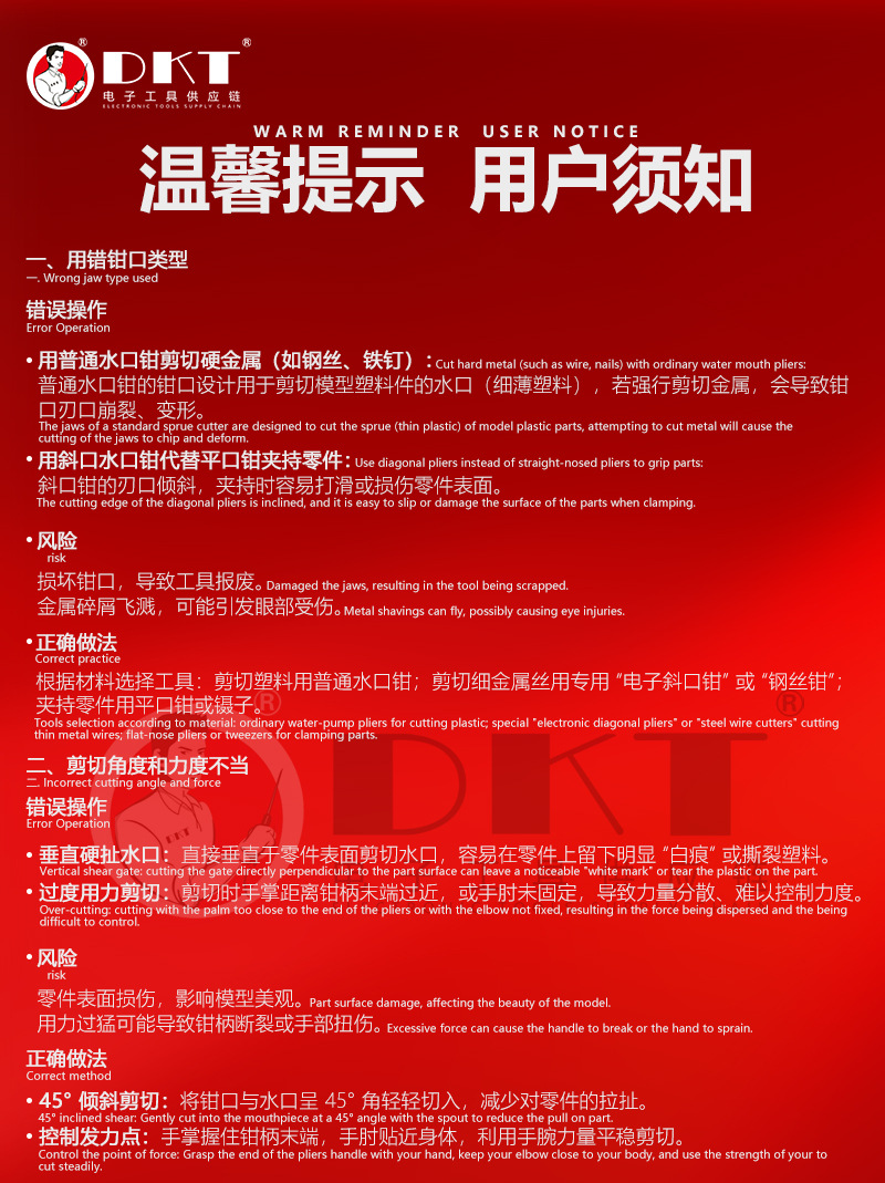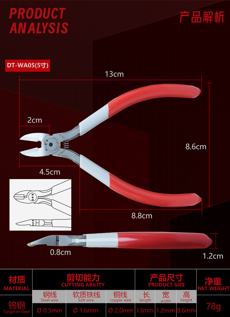 인기 있는 DKT 텅스텐 강철 노즐 펜치, 와이어 커터, 산업용 등급 텅스텐 강철 칼날 냉간 절단 펜치, 합금 텅스텐 강철 절단 펜치