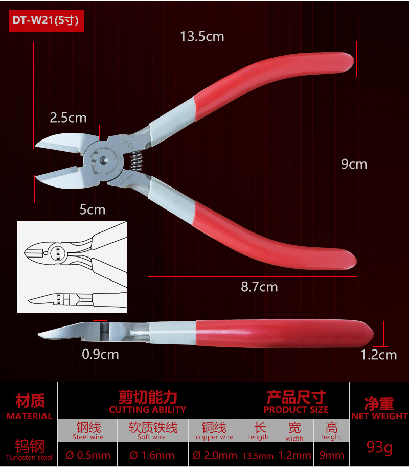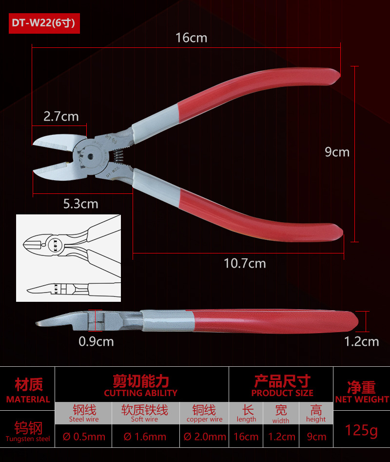 인기 있는 DKT 텅스텐 강철 노즐 펜치, 와이어 커터, 산업용 등급 텅스텐 강철 칼날 냉간 절단 펜치, 합금 텅스텐 강철 절단 펜치스토어 가기