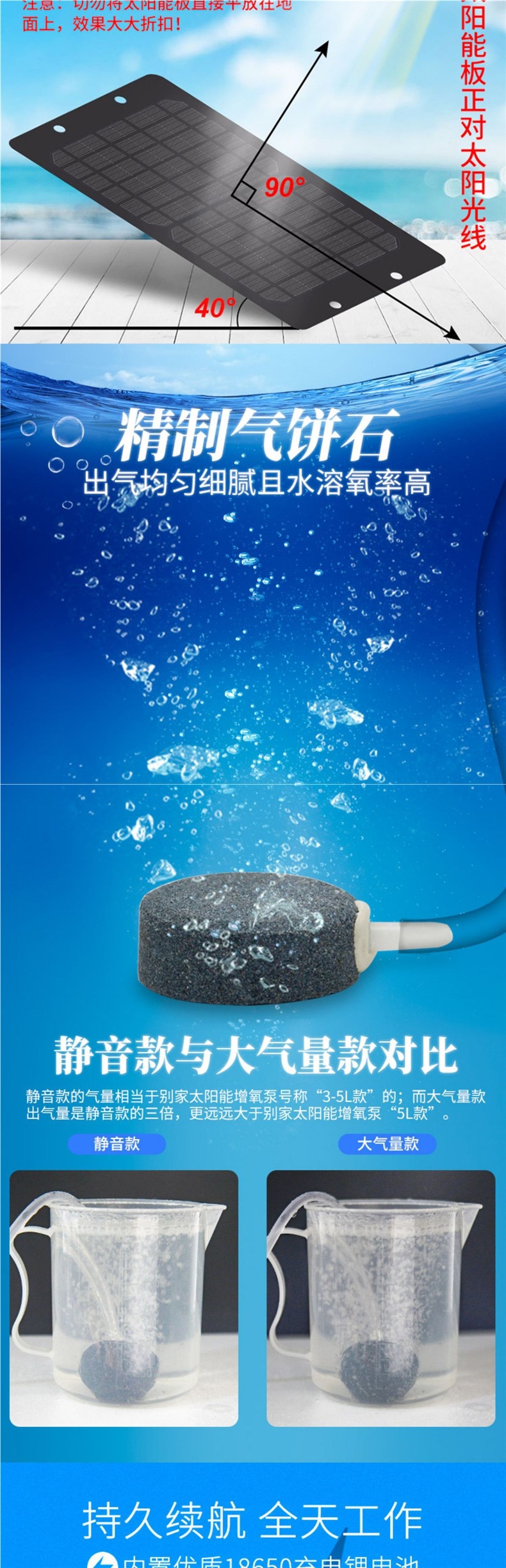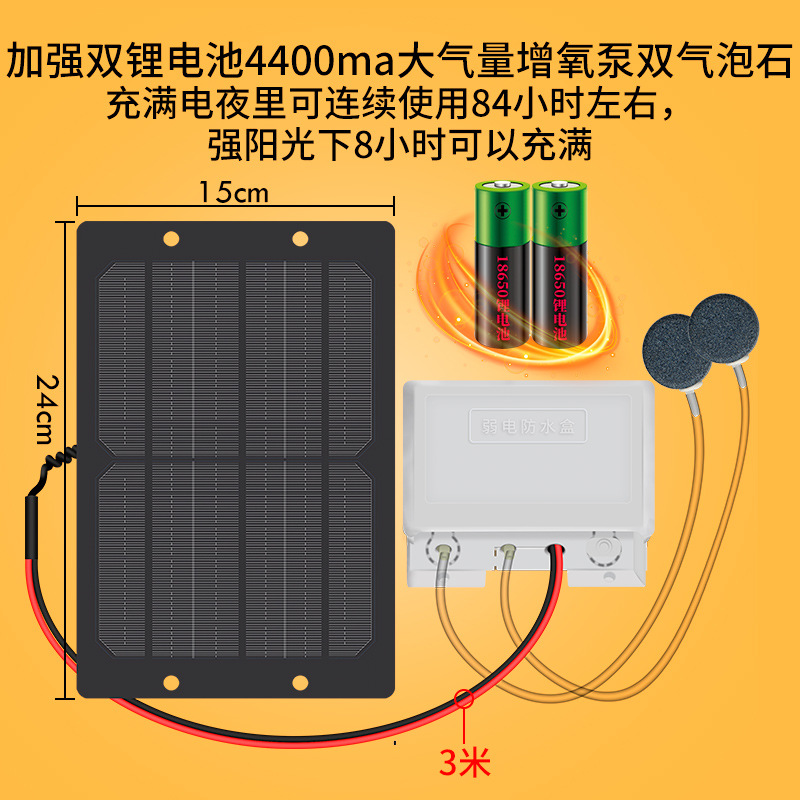 • 듀얼 리튬 배터리 태양광 산소 펌프는 7일 동안 조용하고 연속적인 3L 가스량을 제공합니다.