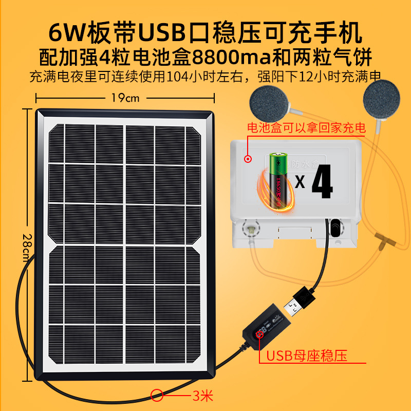• 10w 유리 패널 + 강화 배터리 4개 펌프 2개 에어 케이크 2개 무음 6L 공기량 14일 연속
