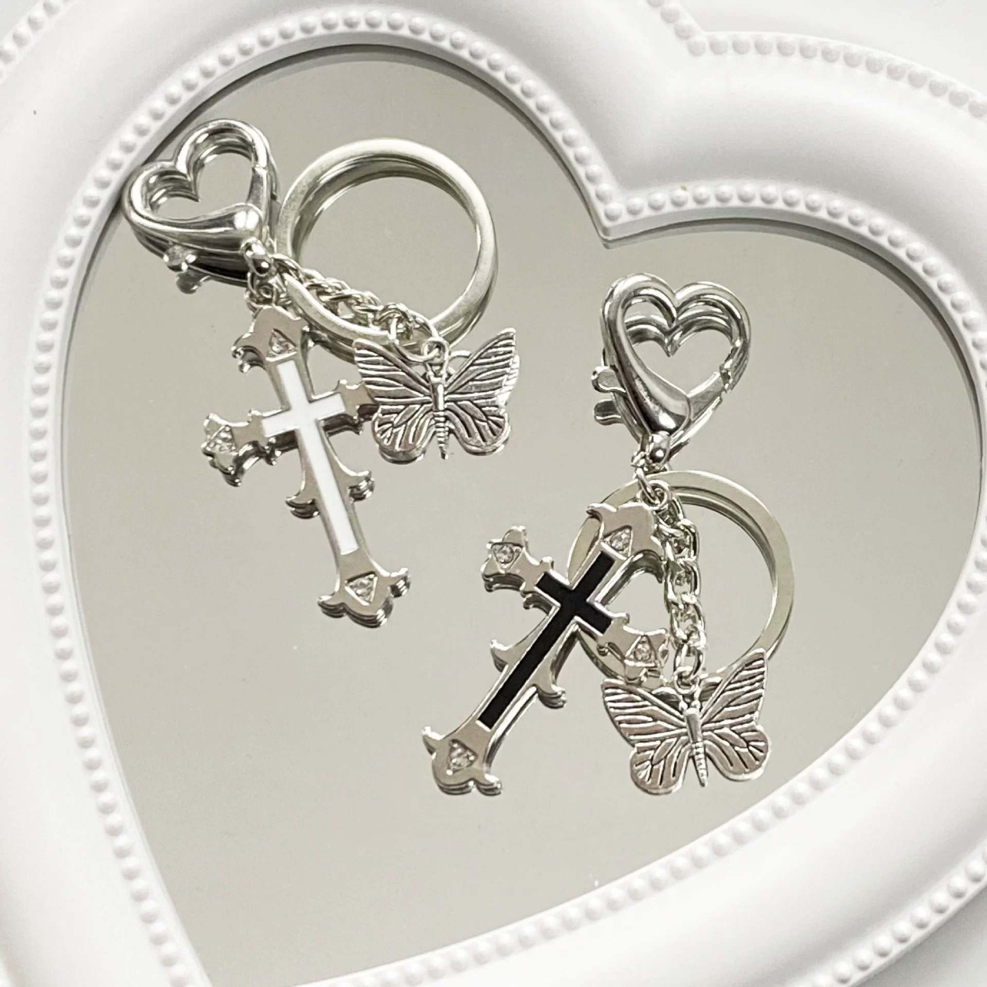 아메리칸 레트로 트렌디 쿨 크로스 나비 키 체인 인 틈새 y2k 핫 소녀 밀레니얼 스타일 가방 펜던트 달콤하고 쿨스토어 가기
