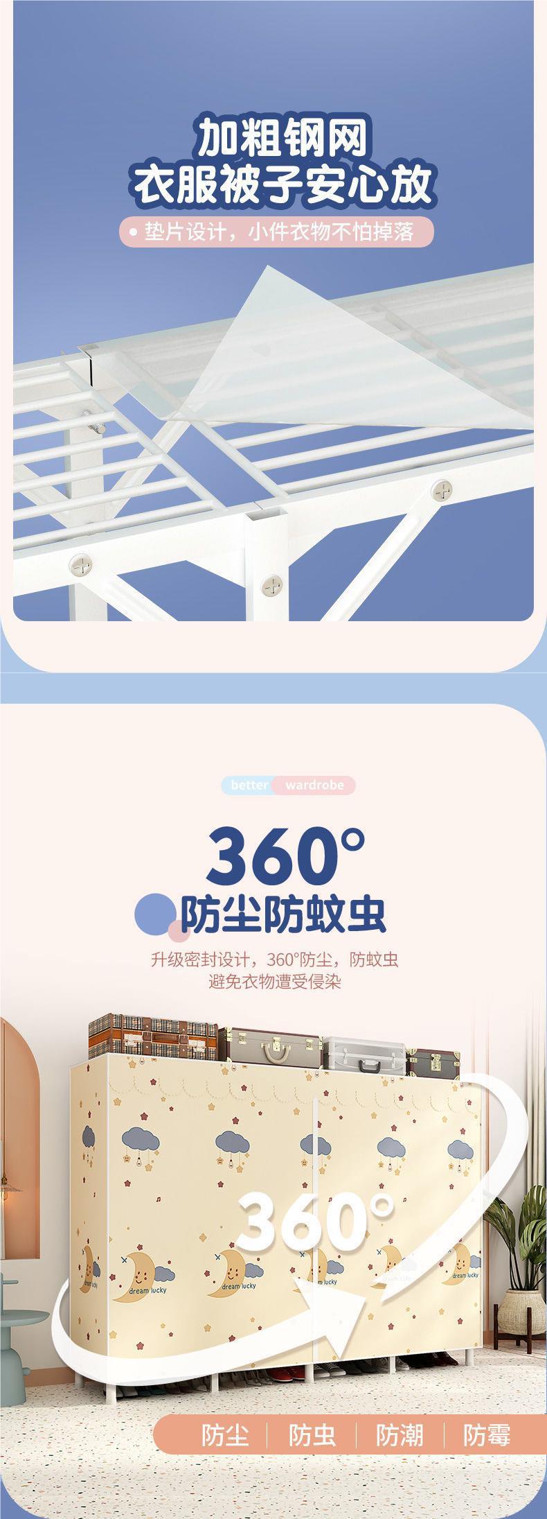 옷장 설치가 필요 없는 접이식 천 옷장 가정용 침실 임대실 간단한 옷장 두껍고 강화되어 강한 Aoyue스토어 가기
