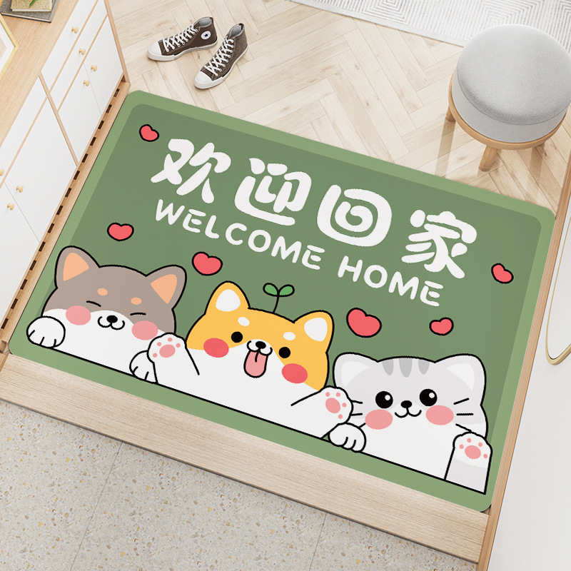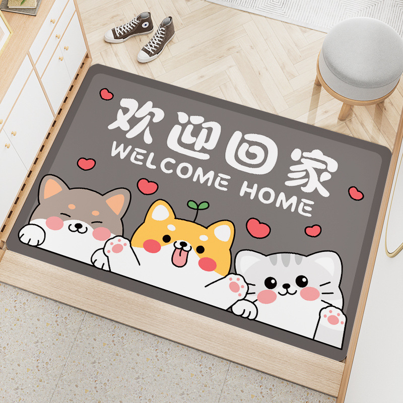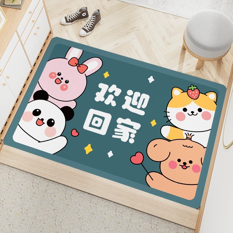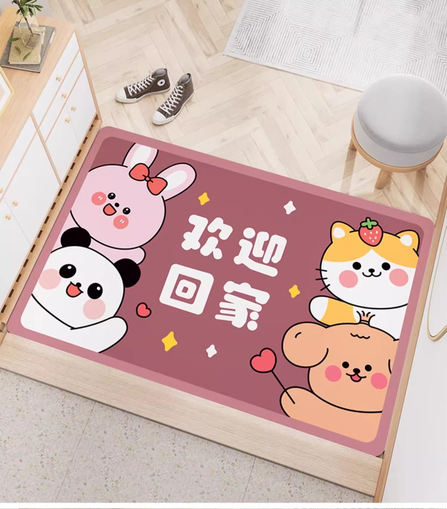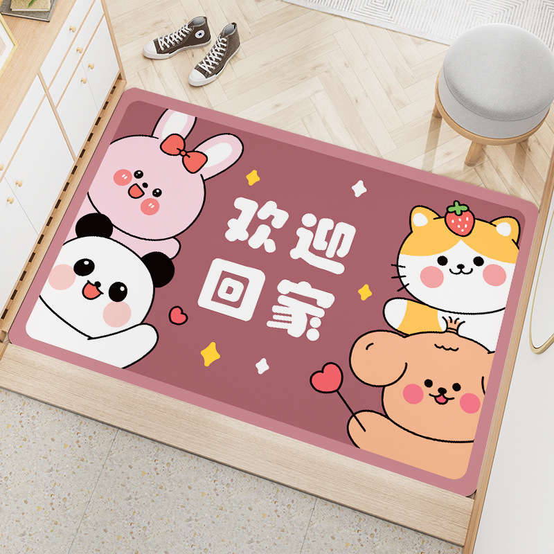 만화 동물 바닥 매트, 흡수성 및 크리스탈 벨벳 부드러운 매트, 욕실 입구 문 매트, 사무실 미끄럼 방지스토어 가기