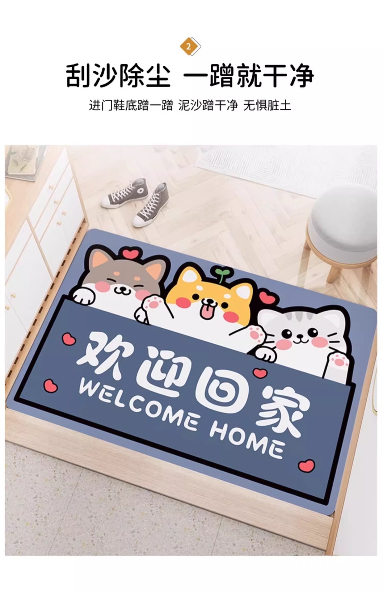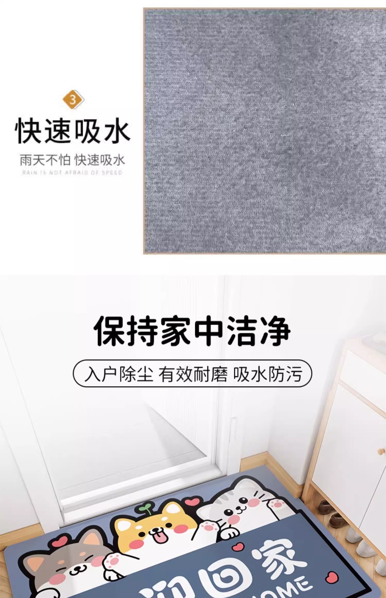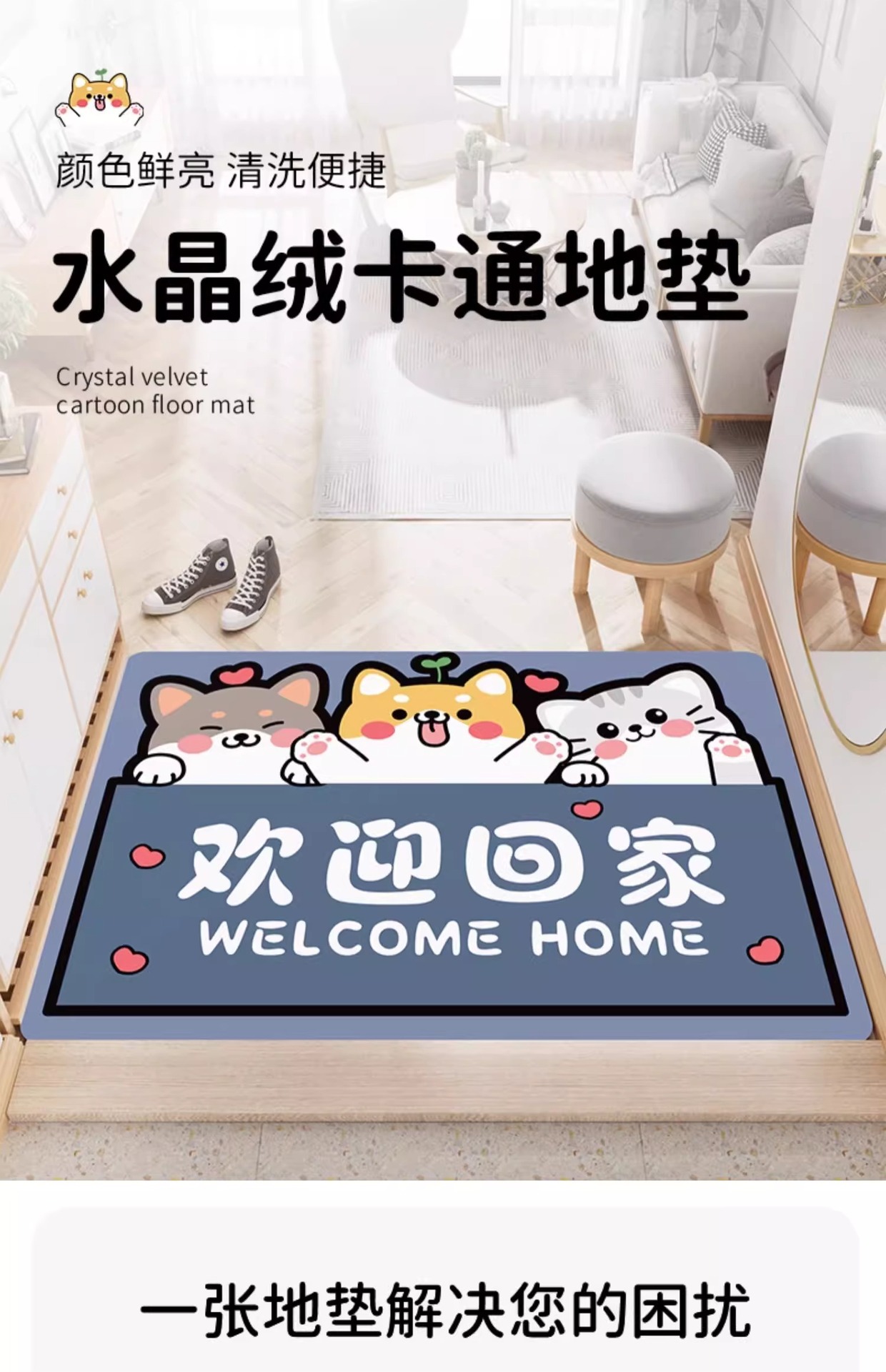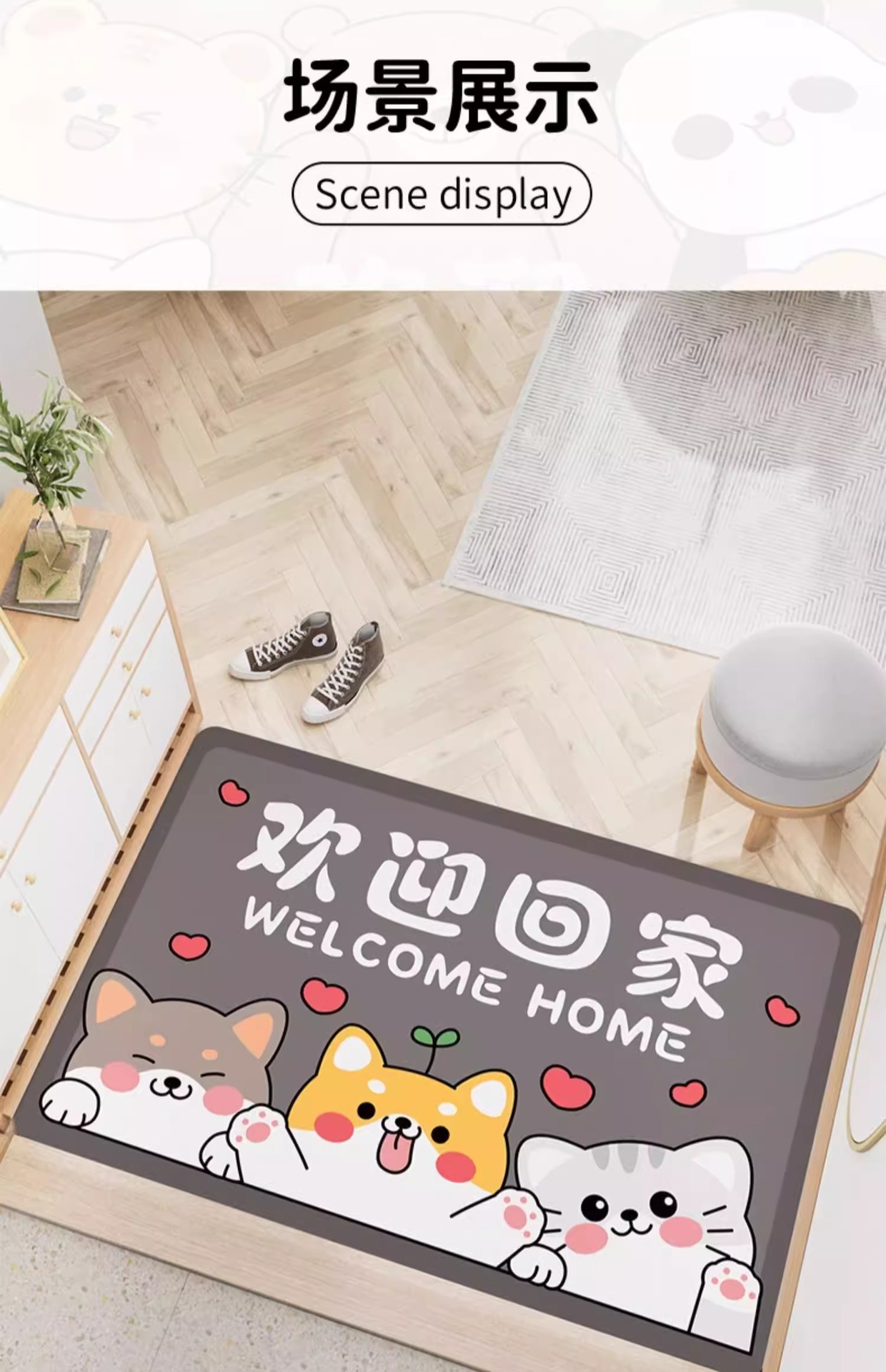 만화 동물 바닥 매트, 흡수성 및 크리스탈 벨벳 부드러운 매트, 욕실 입구 문 매트, 사무실 미끄럼 방지스토어 가기
