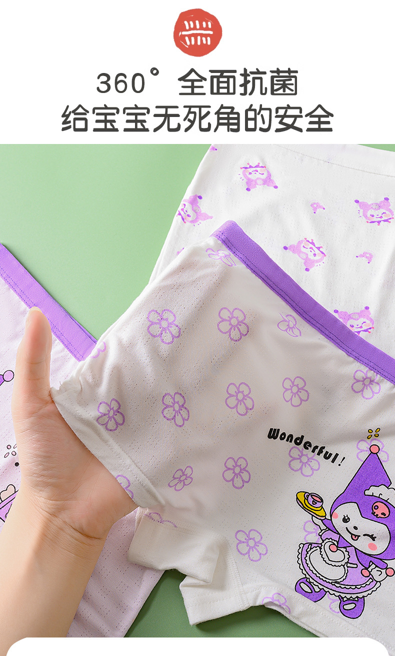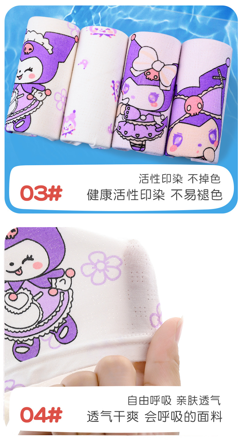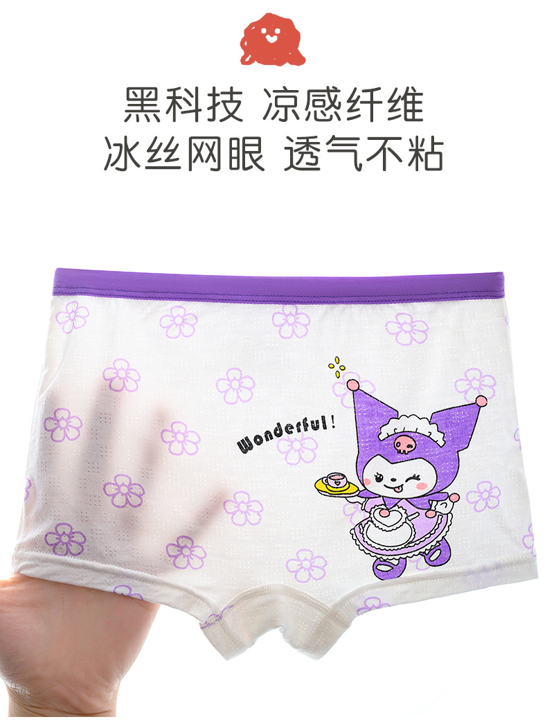 Kuromi 소녀 속옷 얼음 실크 통기성 복서 삼각형 항균 소녀 아기 큰 어린이 어린이 속옷스토어 가기