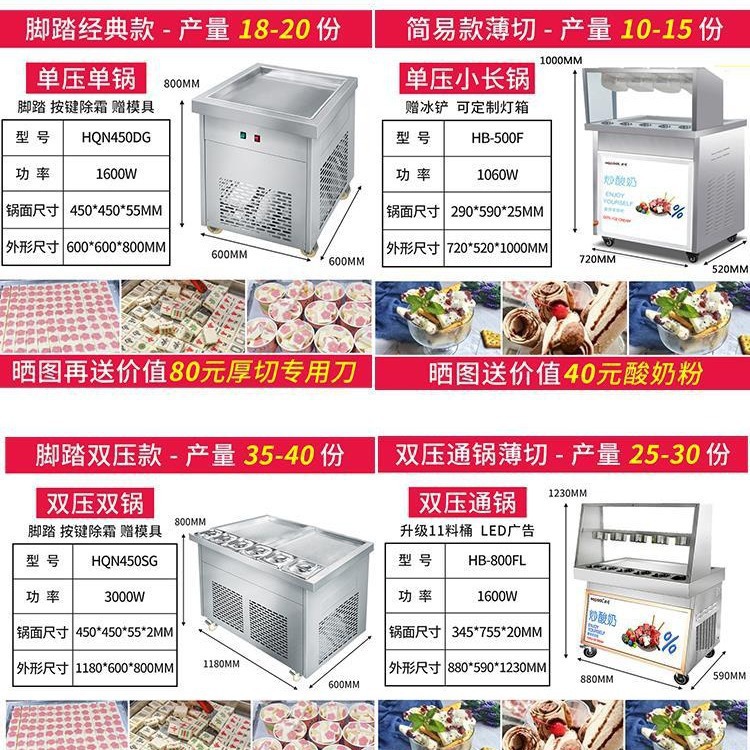 제조업체의 두껍게 자른 요거트 기계, 상업용 아이스 크레이프 기계, 고출력 이중 압력 눈송이 요구르트 과일 아이스크림 롤 스무디 기계스토어 가기