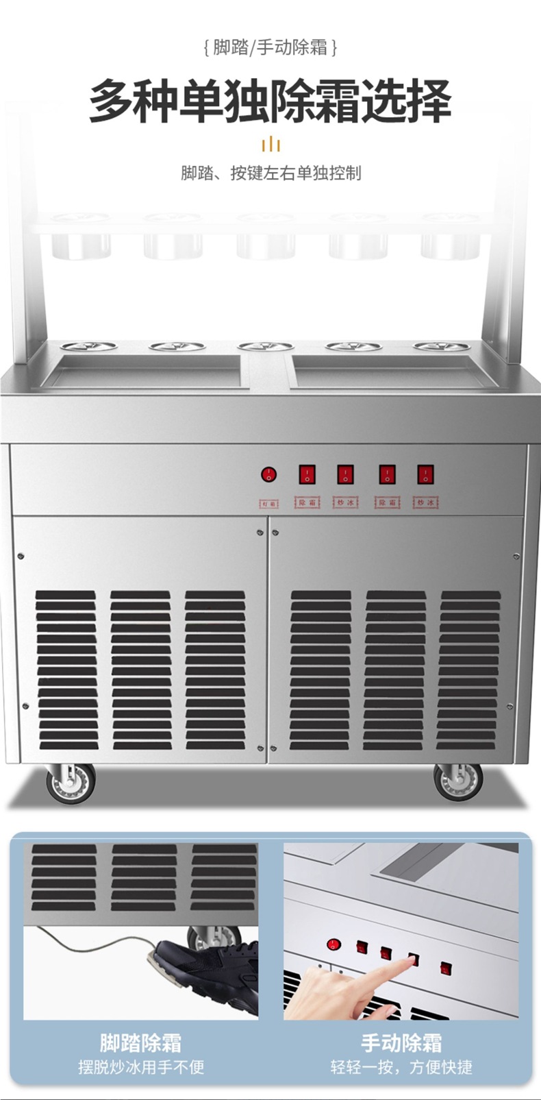 제조업체의 두껍게 자른 요거트 기계, 상업용 아이스 크레이프 기계, 고출력 이중 압력 눈송이 요구르트 과일 아이스크림 롤 스무디 기계