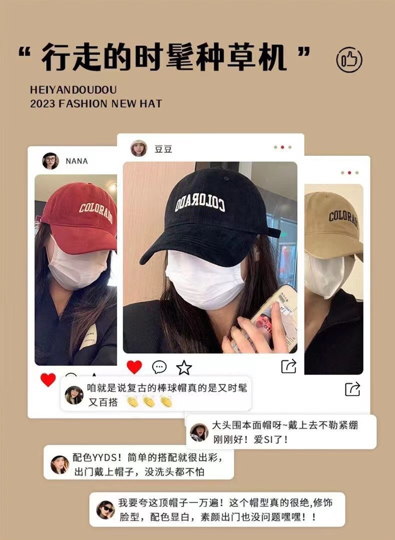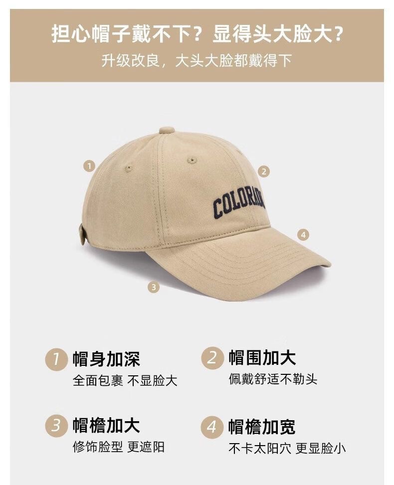 새로운 대형 헤드밴드 야구 모자, 인터넷 연예인 다용도 단색 야구 모자, 깊은 상단, 큰 챙, 문자 자수 피크 캡스토어 가기