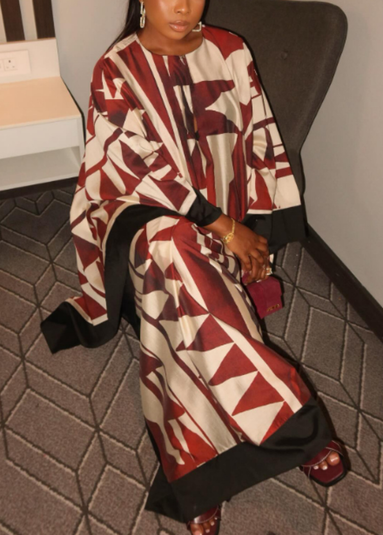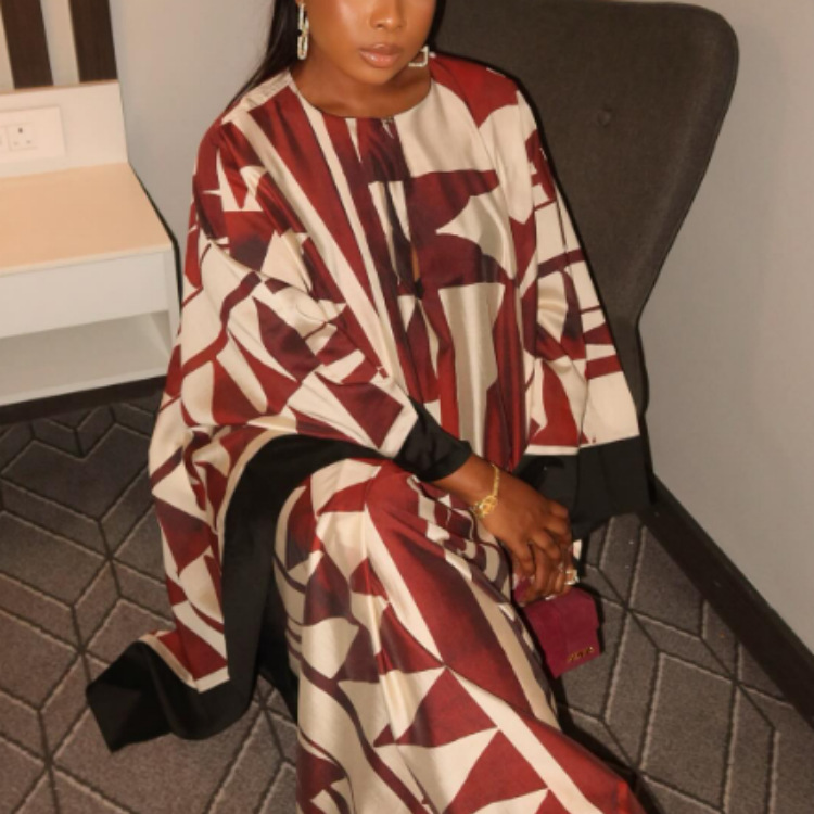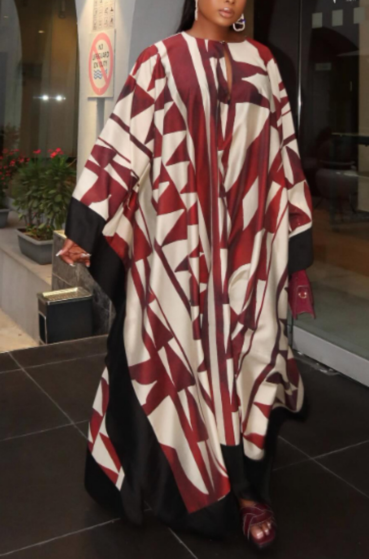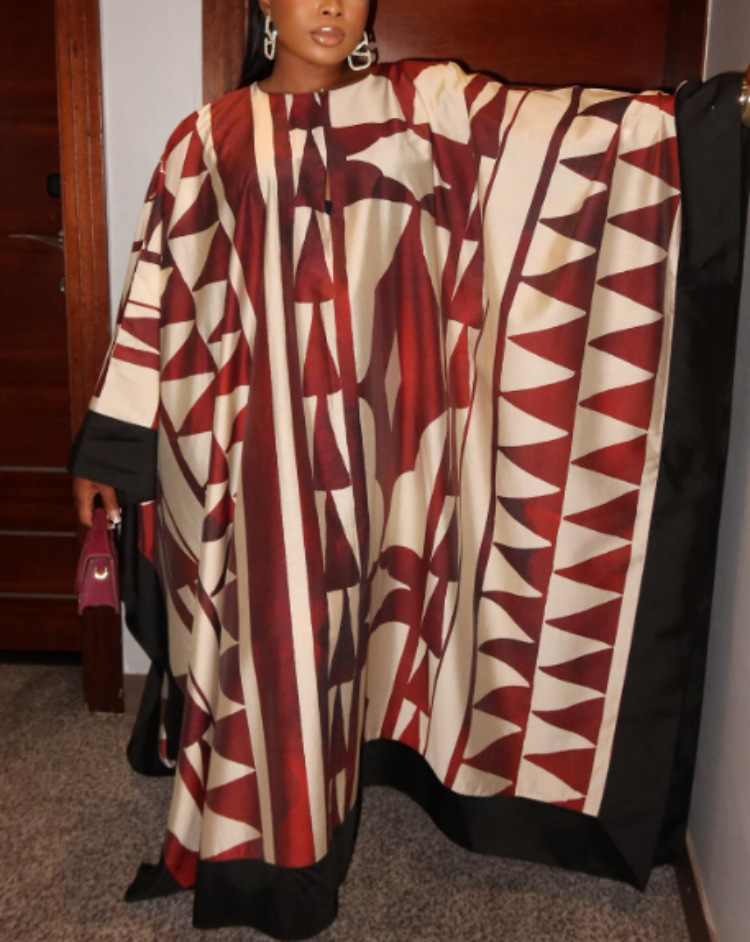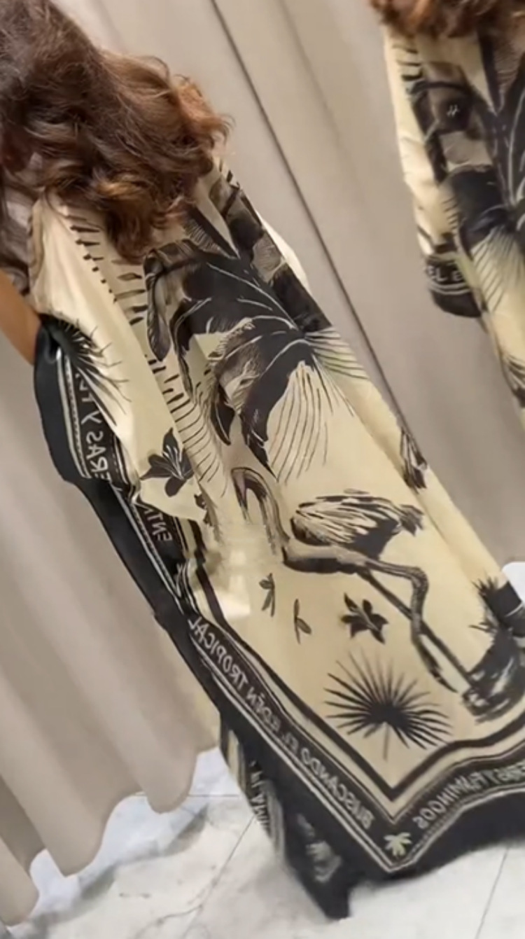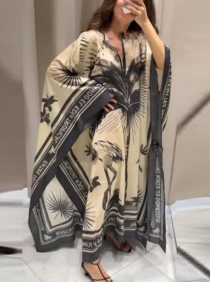 국경 간 유럽과 미국 2025 새로운 가을 복고풍 인쇄 v 넥 느슨한 대형 휴가 스타일 드레스 여성 NQ6019