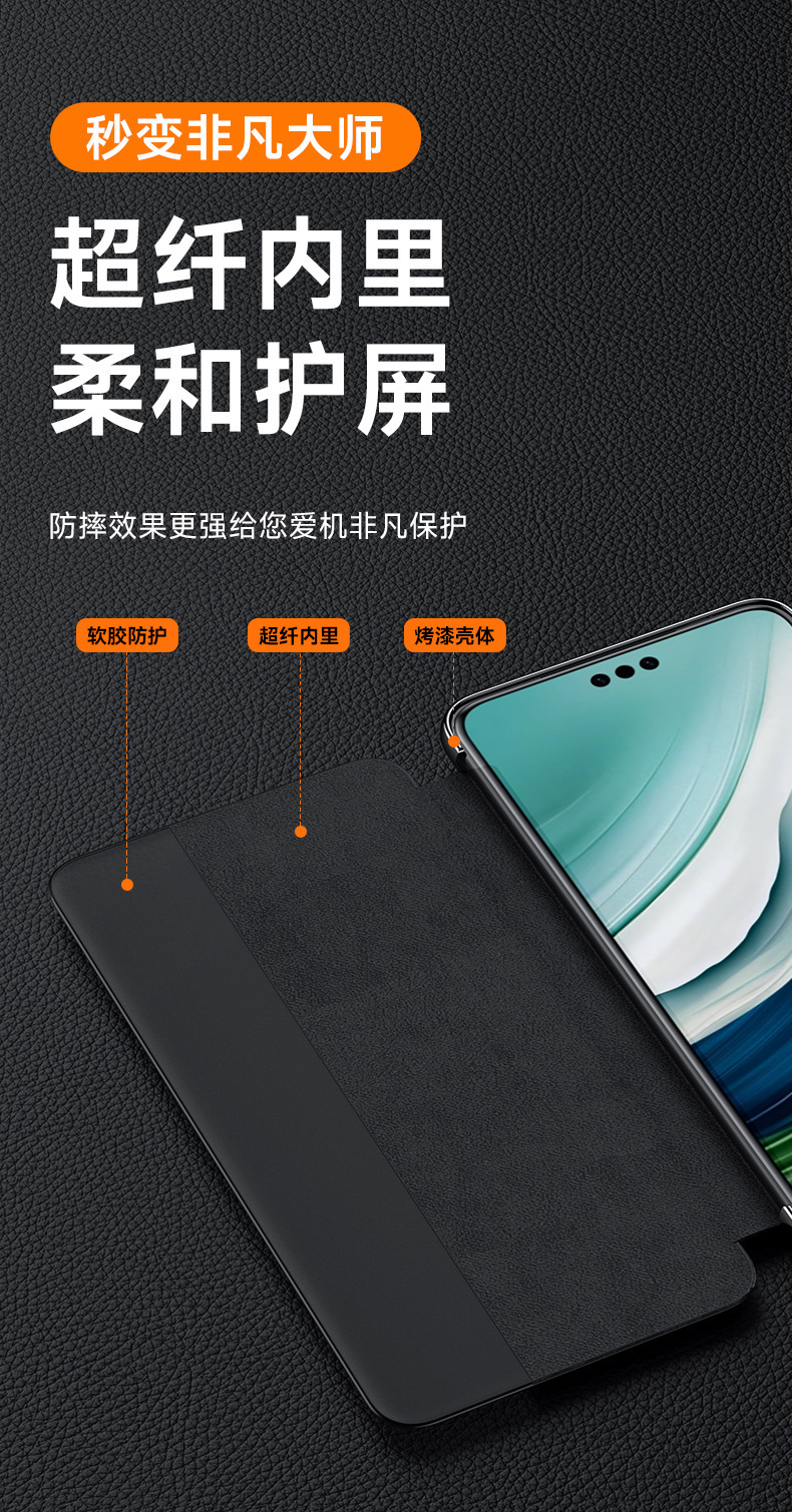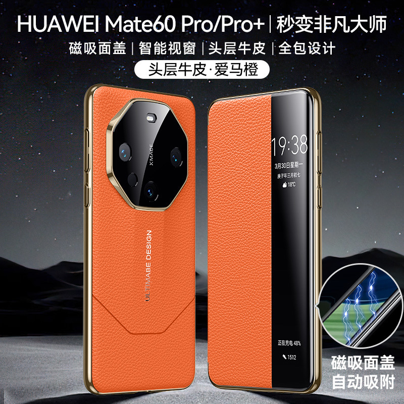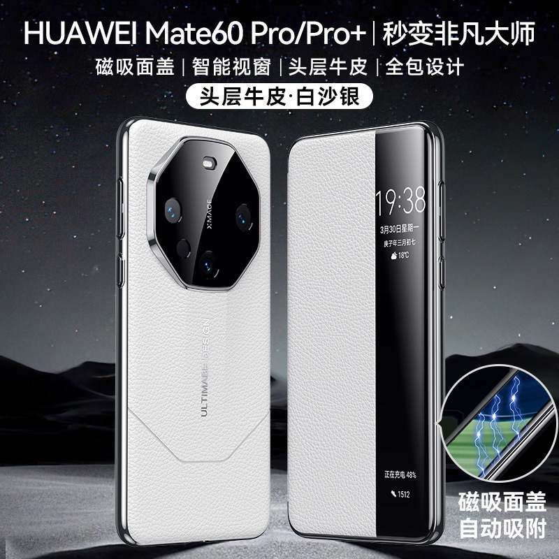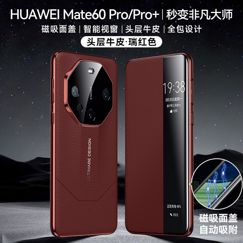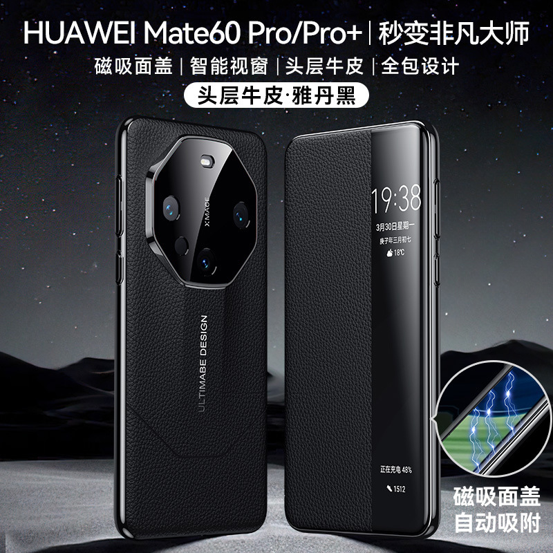 Huawei Mate70Pro+에 적합하여 몇 초 만에 특별한 마스터 휴대폰 케이스로 변신합니다. 정품 가죽 플립 스마트 가죽 케이스 60RS 일체형스토어 가기