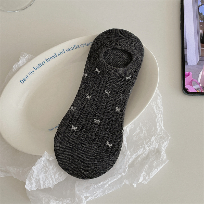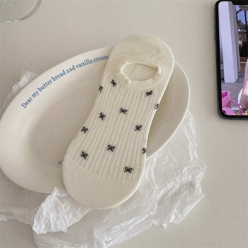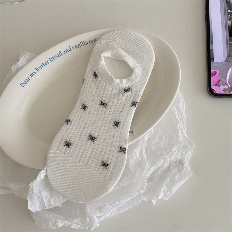 Bowknot ins 스타일 여성 양말 보트 양말 여름 얇은 미끄럼 방지 힐 보이지 않는 중공 통기성 얕은 양말