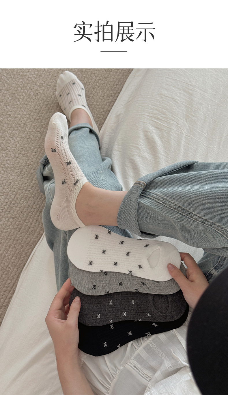 Bowknot ins 스타일 여성 양말 보트 양말 여름 얇은 미끄럼 방지 힐 보이지 않는 중공 통기성 얕은 양말스토어 가기