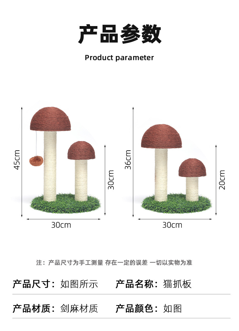 버섯 고양이 클라이밍 프레임, 수직 고양이 발톱 연삭 및 놀이, 다기능 고양이 프레임, 사이잘 컬럼, 작은 면적, 긁힘 방지 고양이 클라이밍 프레임