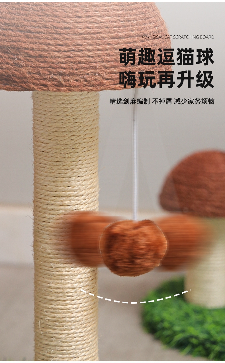 버섯 고양이 클라이밍 프레임, 수직 고양이 발톱 연삭 및 놀이, 다기능 고양이 프레임, 사이잘 컬럼, 작은 면적, 긁힘 방지 고양이 클라이밍 프레임스토어 가기