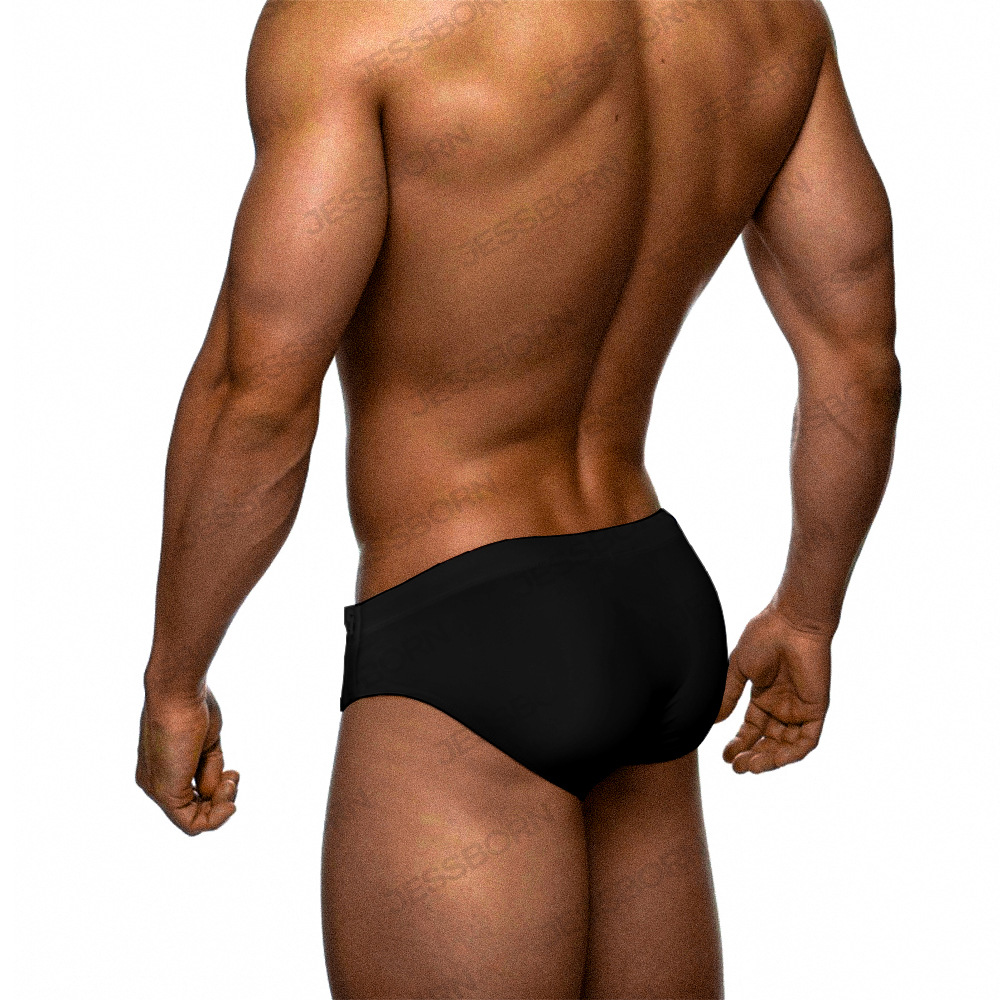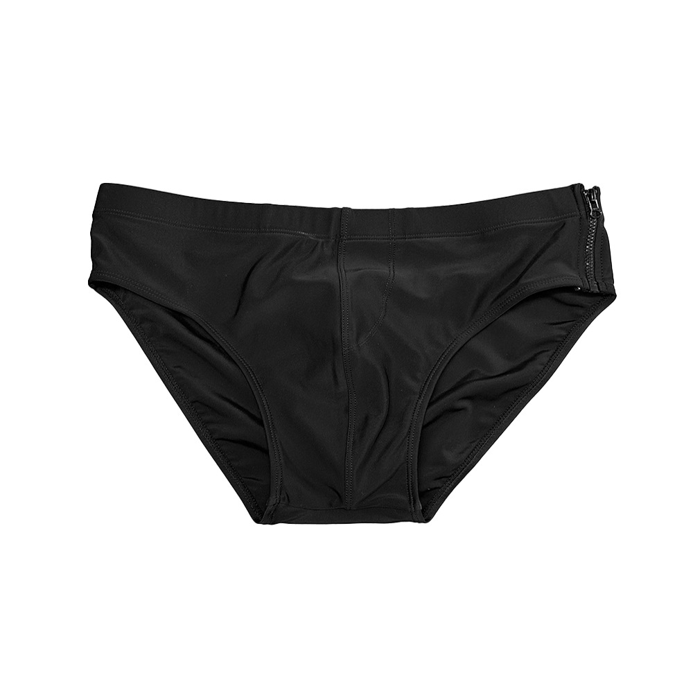 JESSBORN男单边拉链三角泳裤侧开游泳裤纯色低腰温泉沙滩短裤