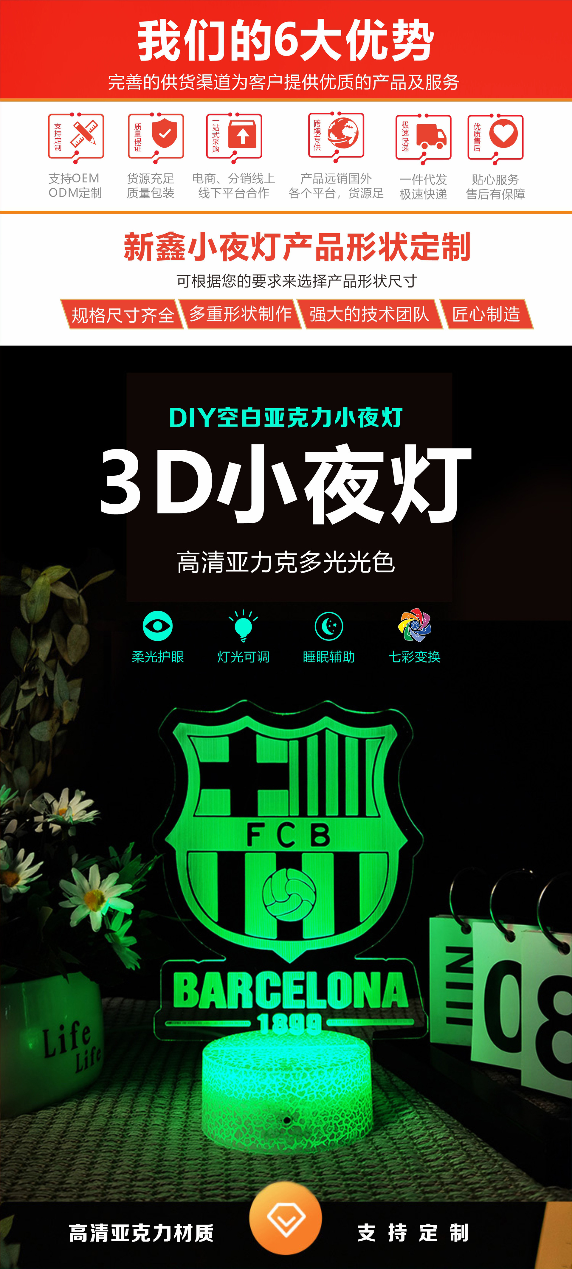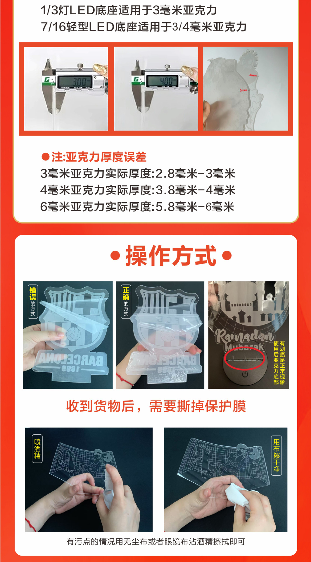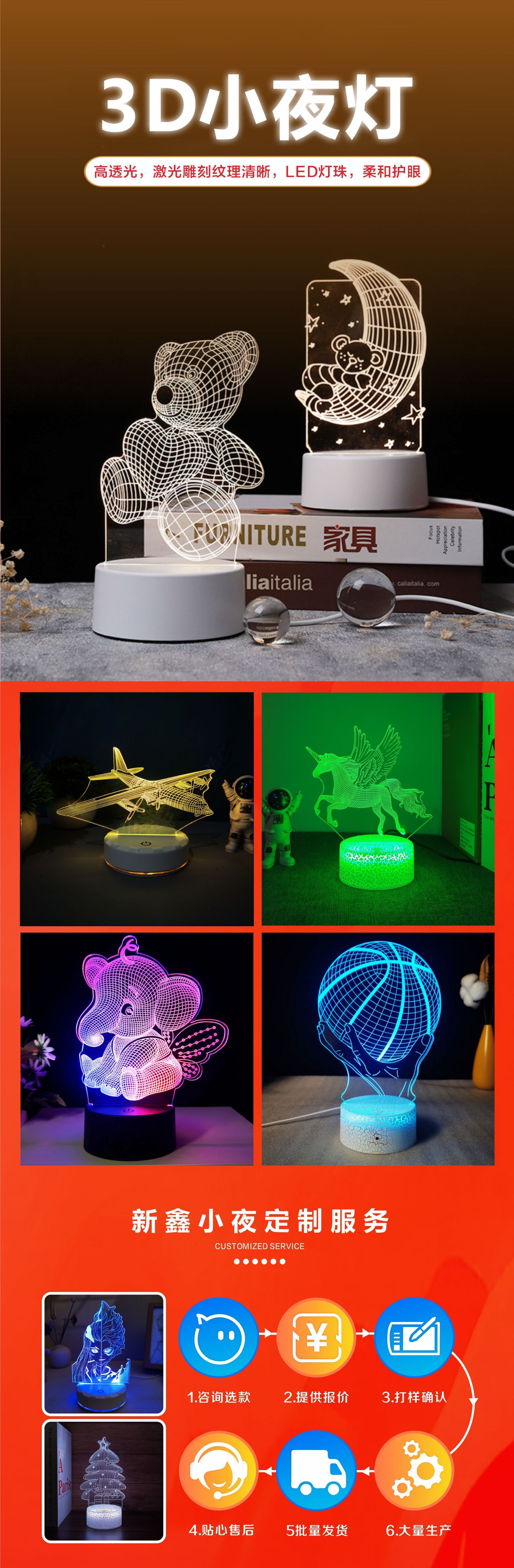 공장 직접 판매 3d 야간 조명베이스 usb 3색 단색 균열 다채로운 터치 원격 제어 배터리 충전 나뭇결스토어 가기
