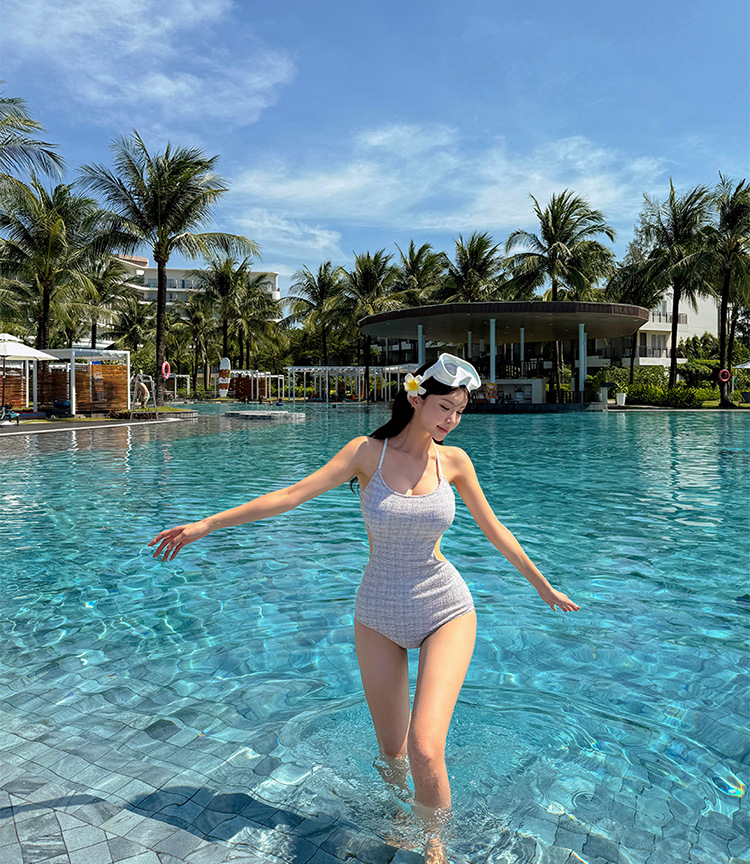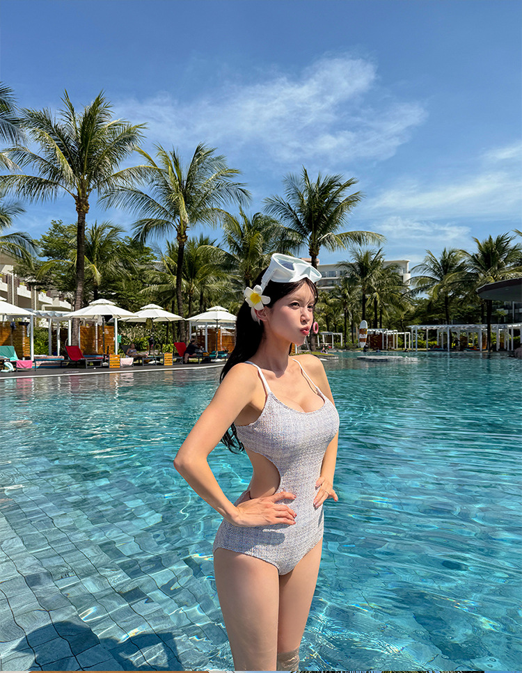 2025 한국형 원피스 수영복 여성 순수한 욕망은 살을 커버하고 슬림하고 섹시한 아름다운 등을 보여줍니다. 새로운 해변 온천 수영복