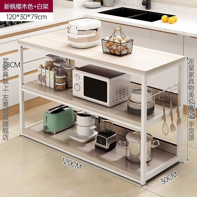 주방 수납 선반, 바닥에서 천장까지 이어지는 다층 야채 절단 테이블, 간단한 냄비 선반, 수납 선반, 가정용 다기능 전자 레인지 수납 선반스토어 가기