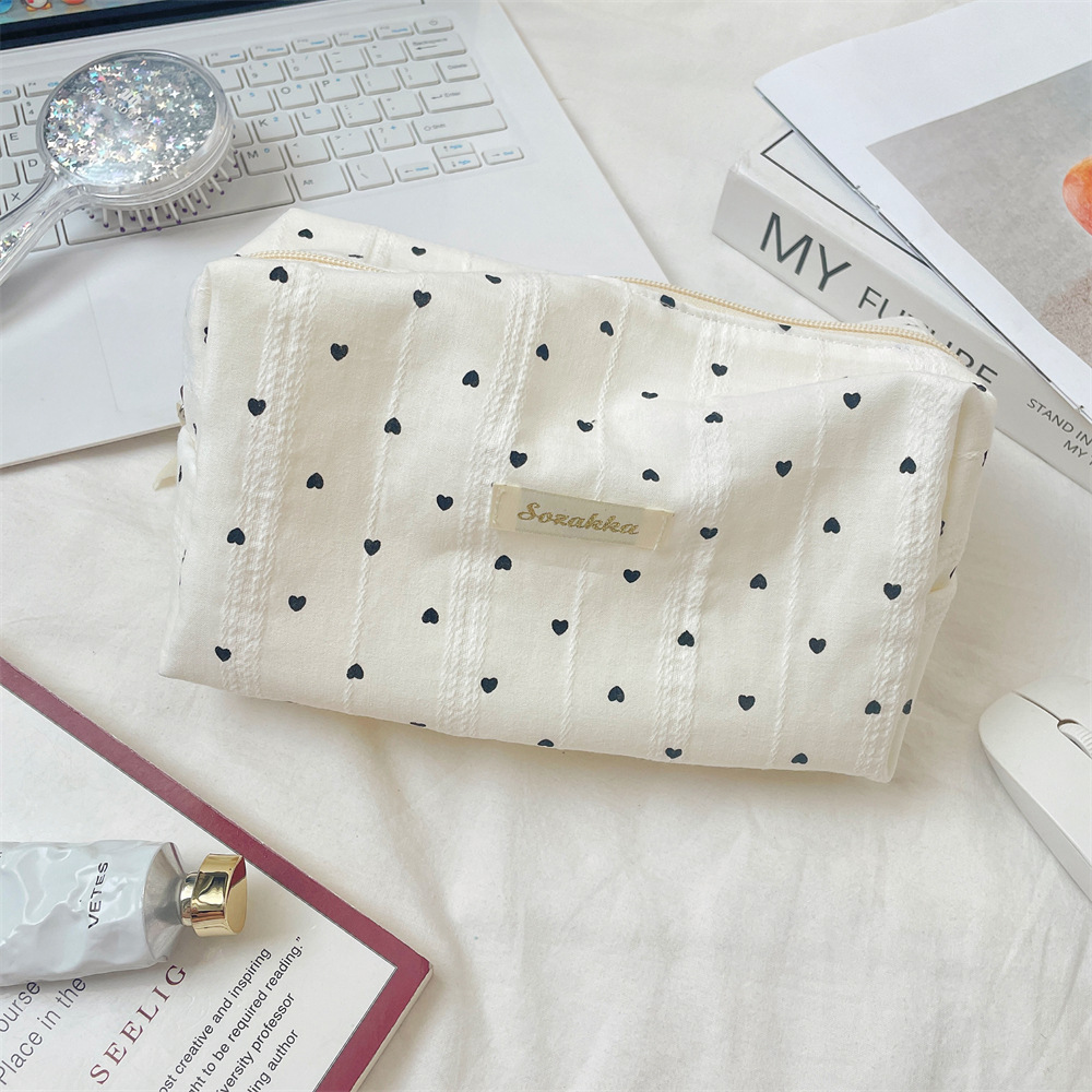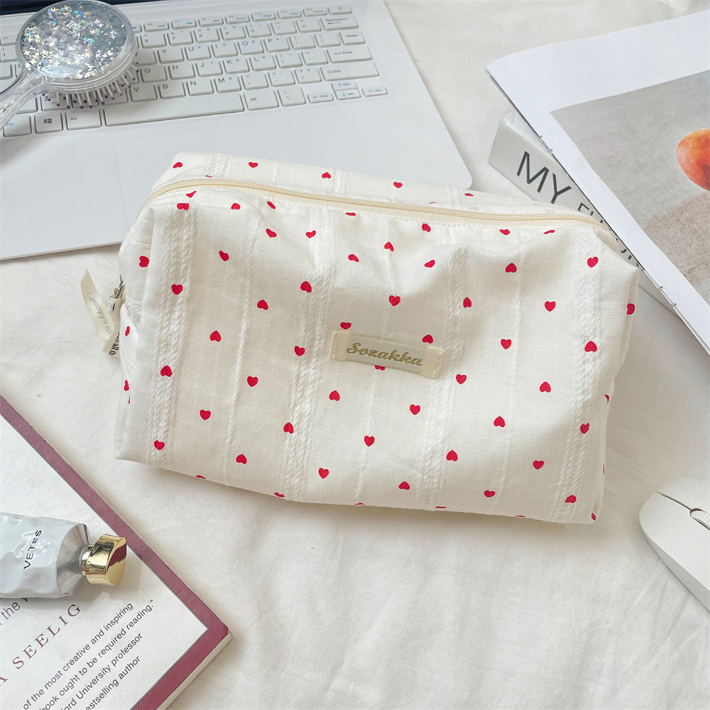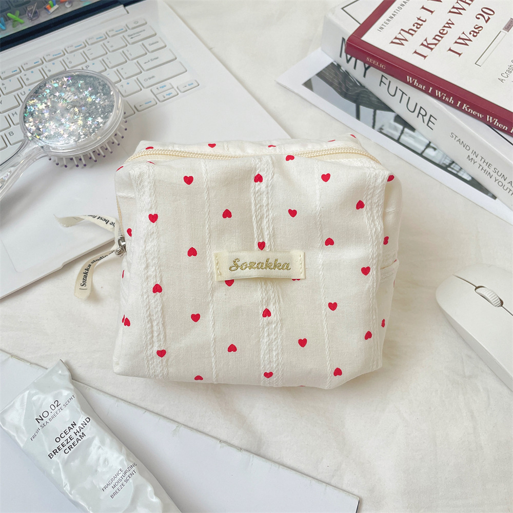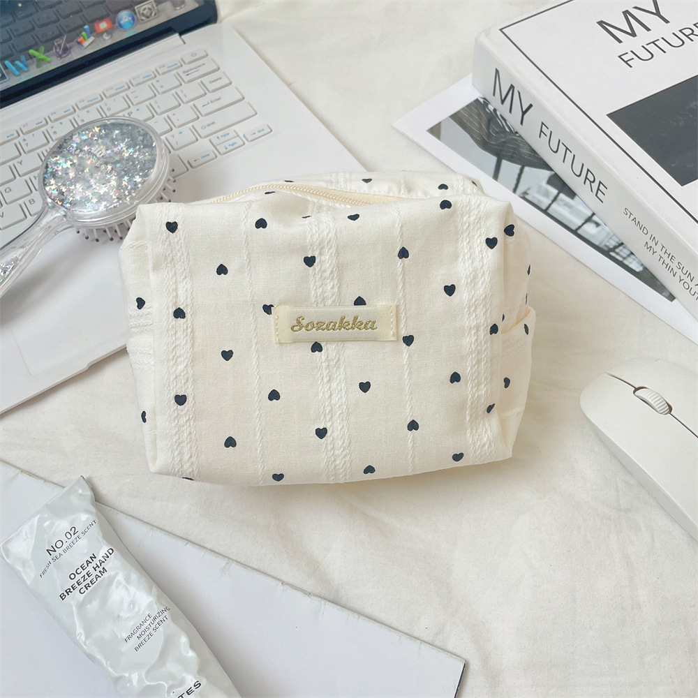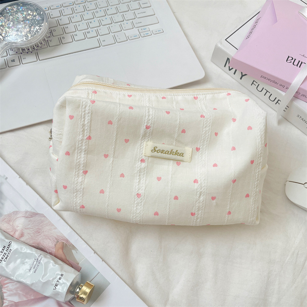 56171 스트라이프 러브 화장품 가방 휴대용 여행 대용량 세면 용품 메이크업 포장 작은 사각형 가방 보관 가방