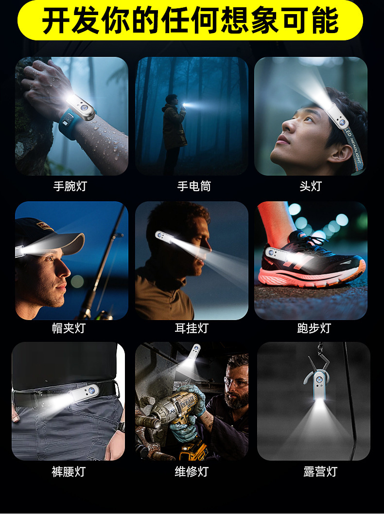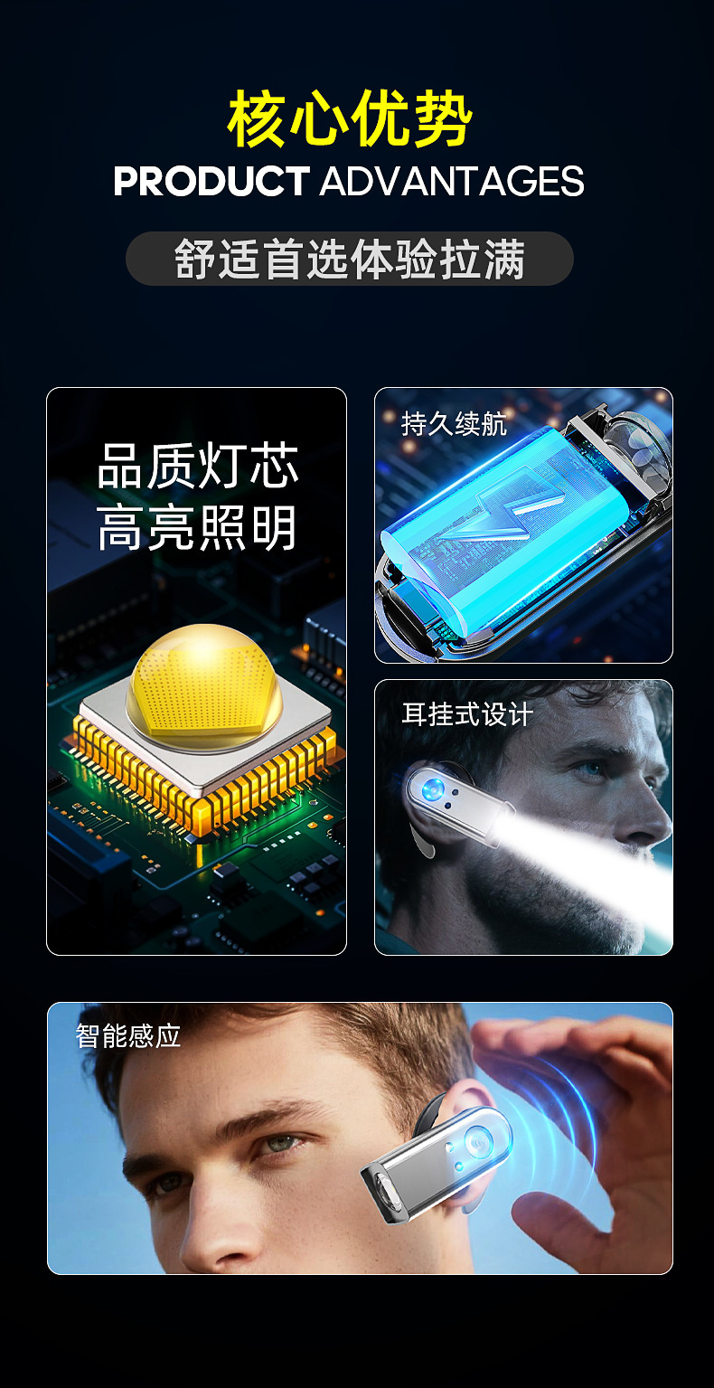 새로운 야외 교수형 귀 유도 헤드 라이트 분리형 미니 야간 낚시 및 사이클링 조명 휴대용 헤드 라이트