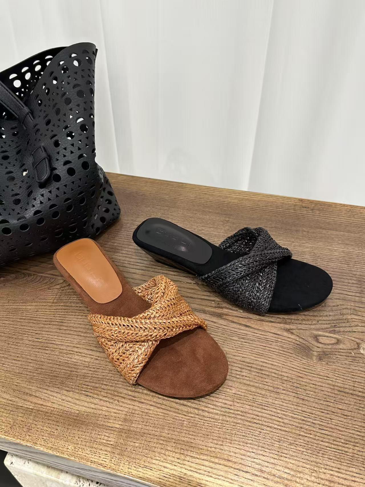 여름 여성용 Kelu리 스타일 브라운 웨지 샌들, 아름다운 직조 리조트 스타일 슬리퍼 2025 새로운 스타일스토어 가기