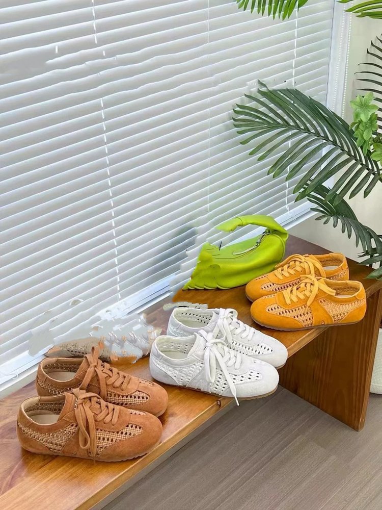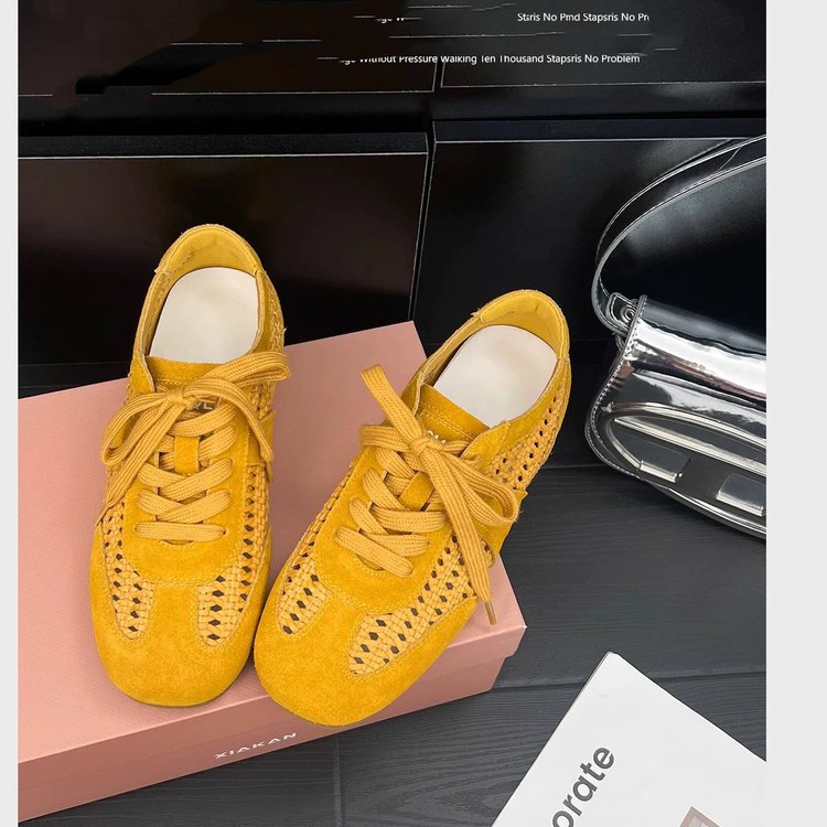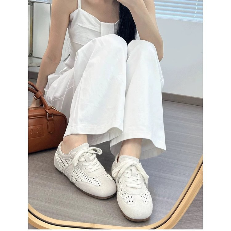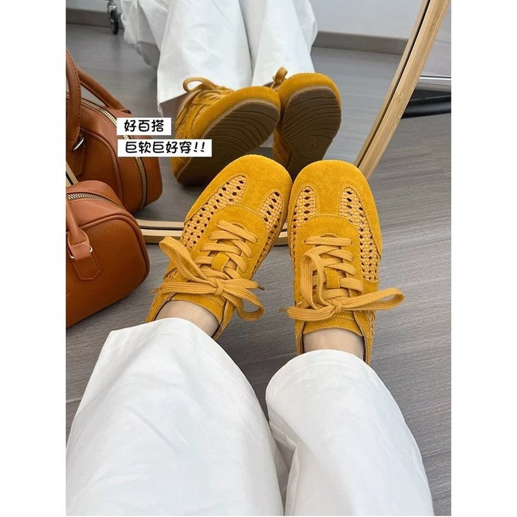 여성을위한 손으로 짠 부드러운 밑창 통기성 구멍 운동화 2025 여름 여성을위한 새로운 메쉬 육군 훈련 캐주얼 신발스토어 가기