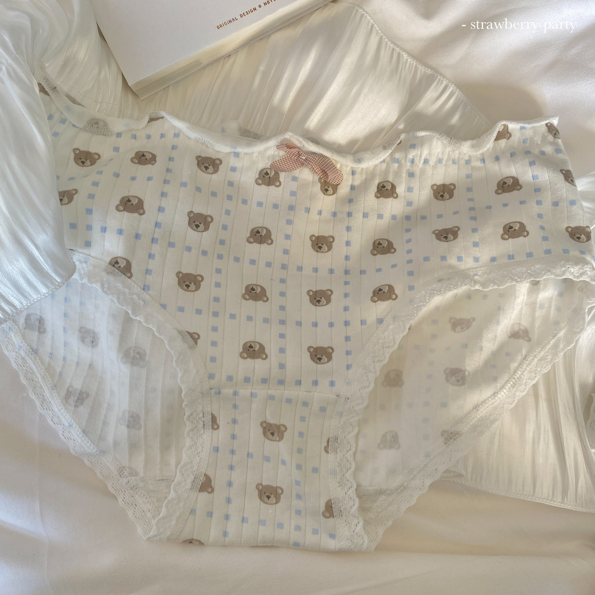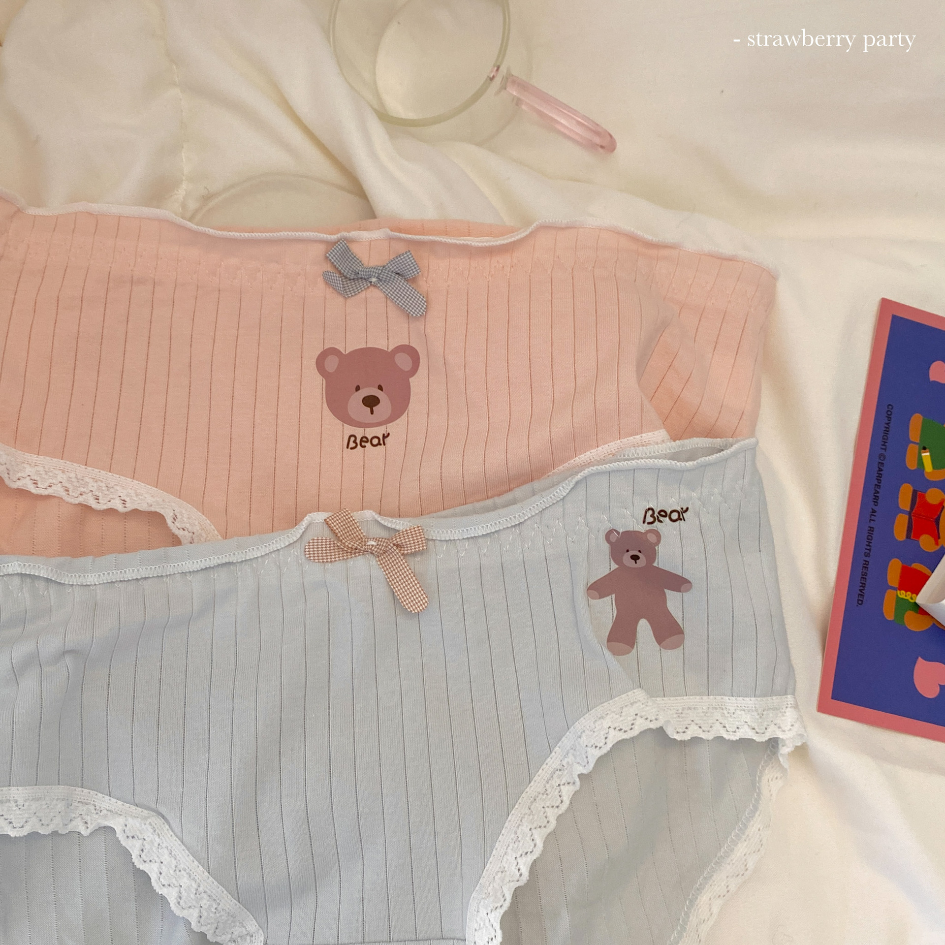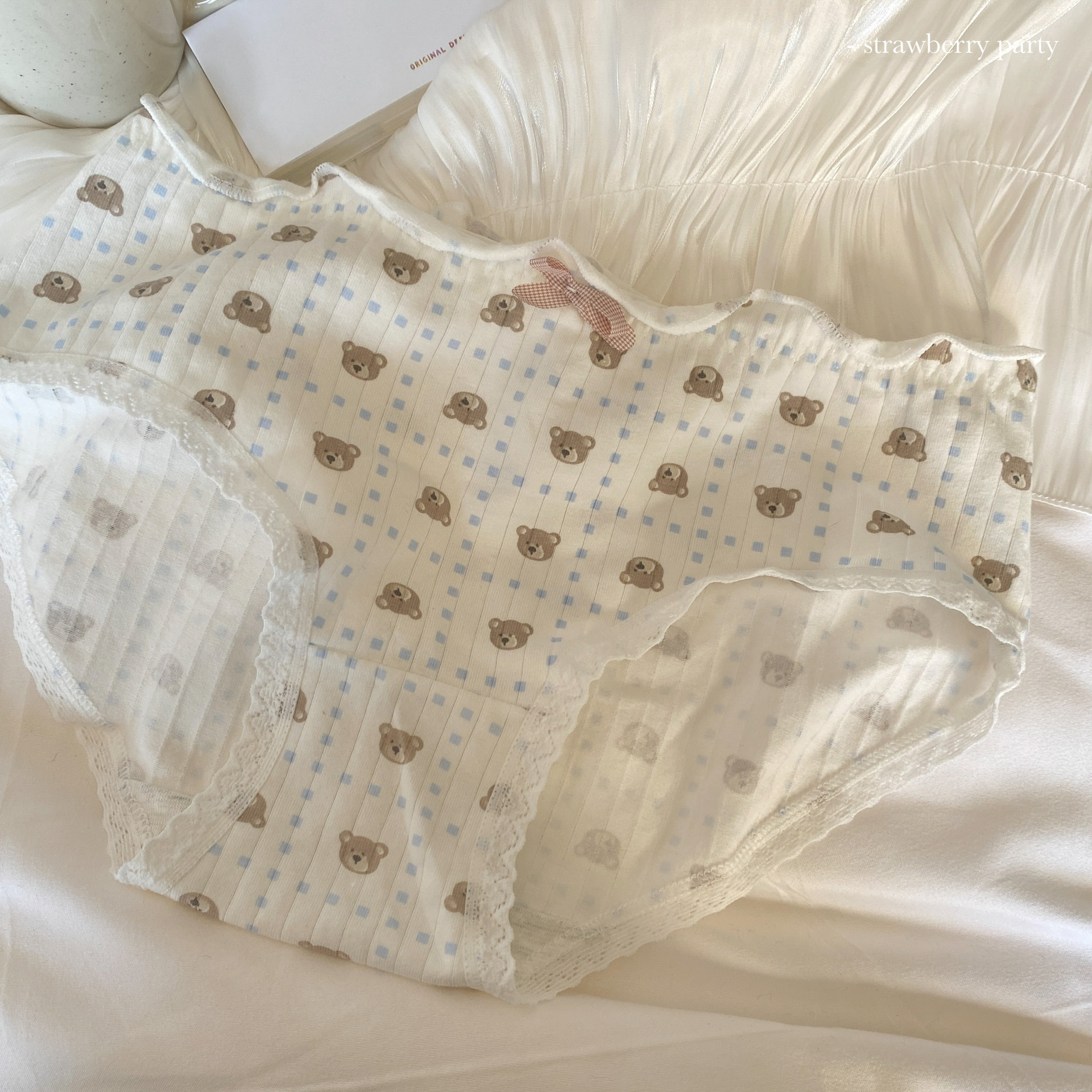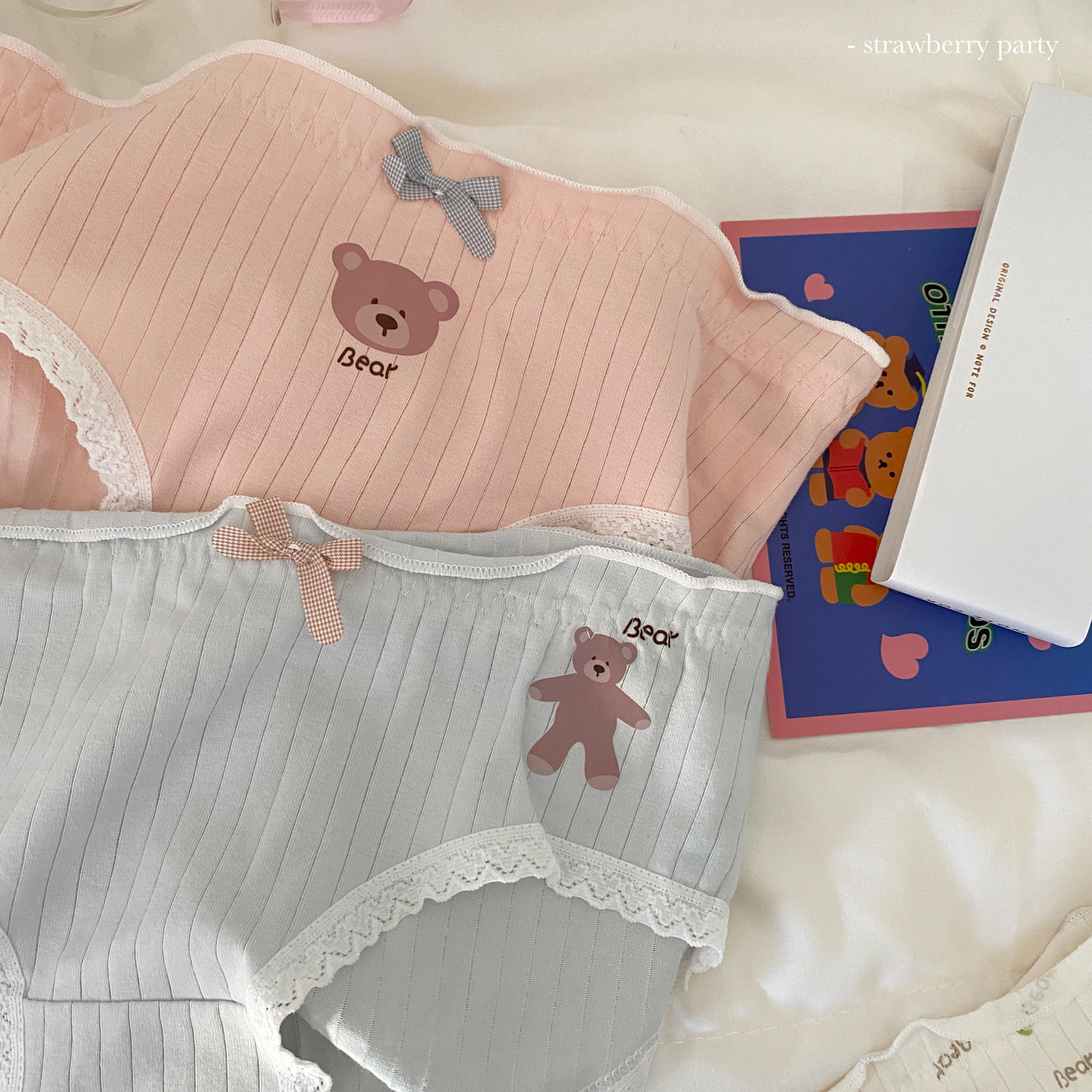 부드러운 작은 아기곰~ 일본식 실면 속옷, 미드웨이스트, 귀여운 소녀 스타일 통기성 학생 팬티스토어 가기