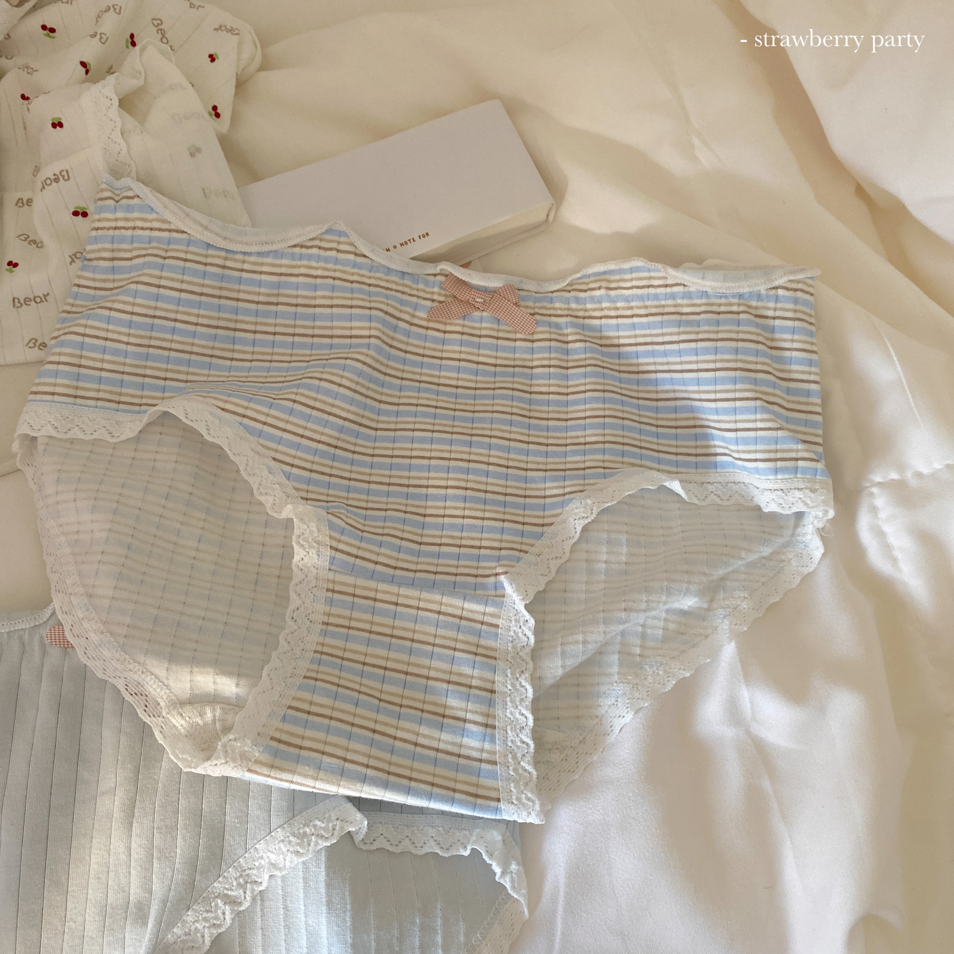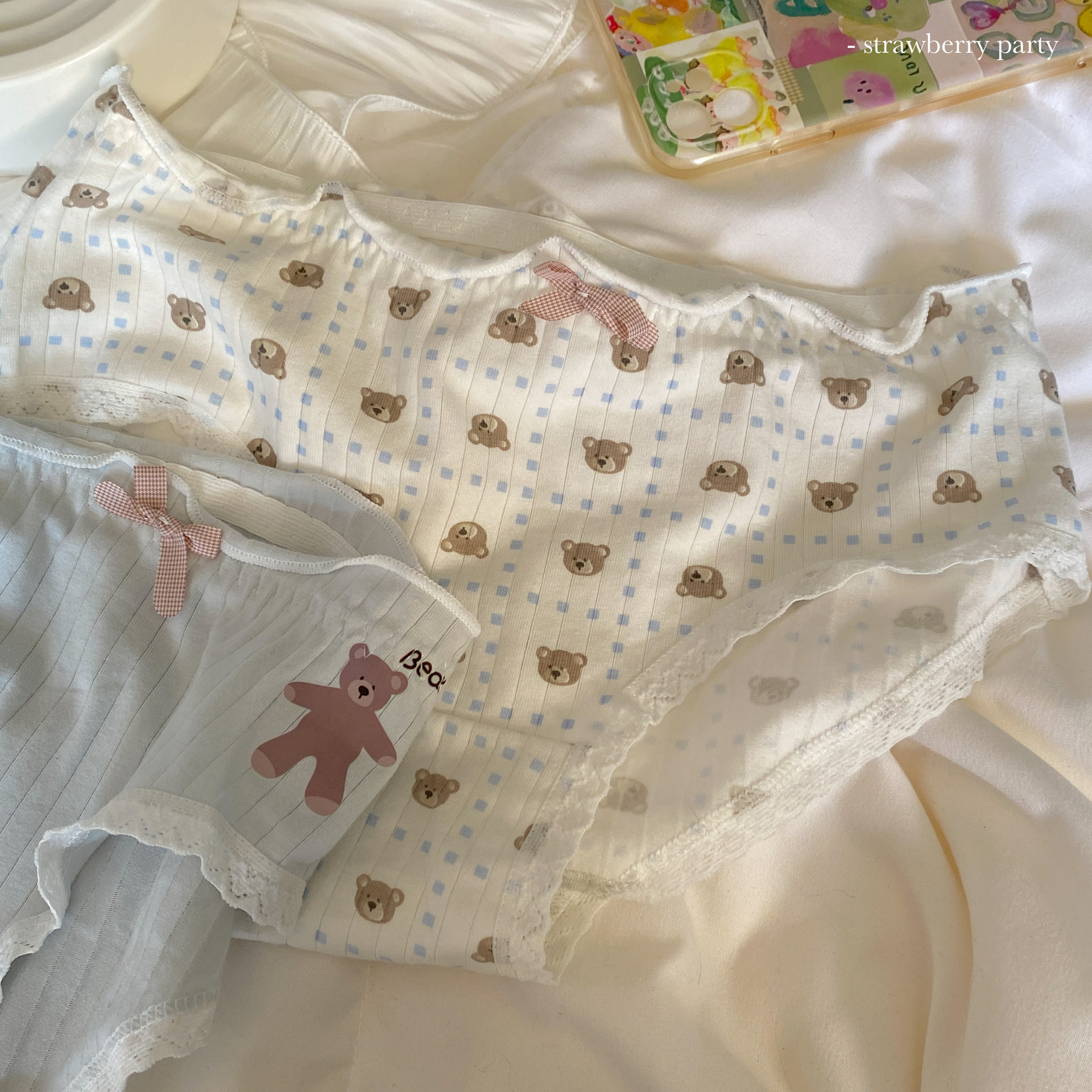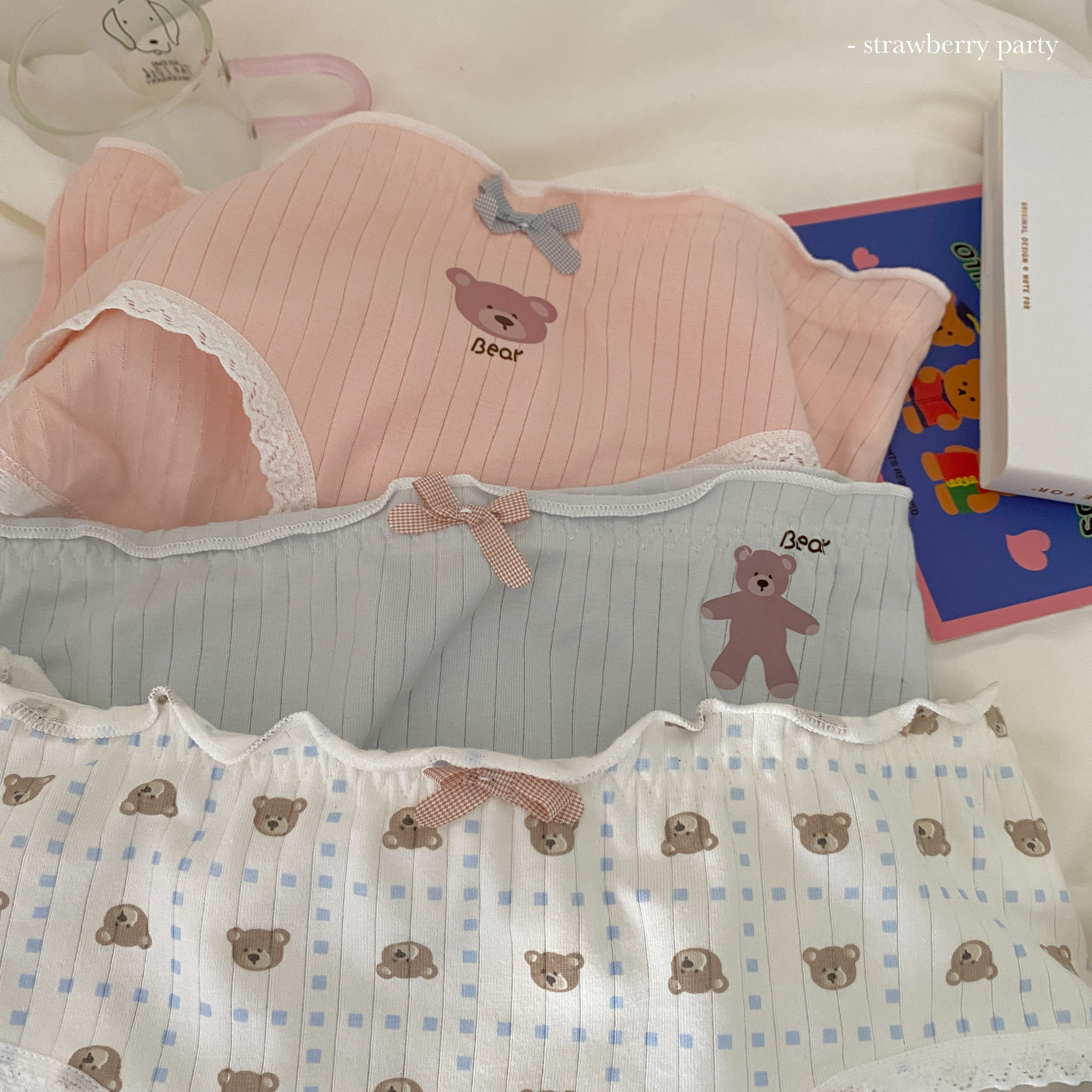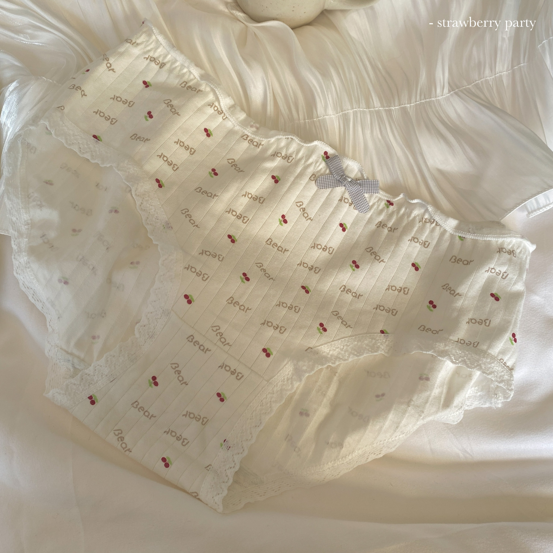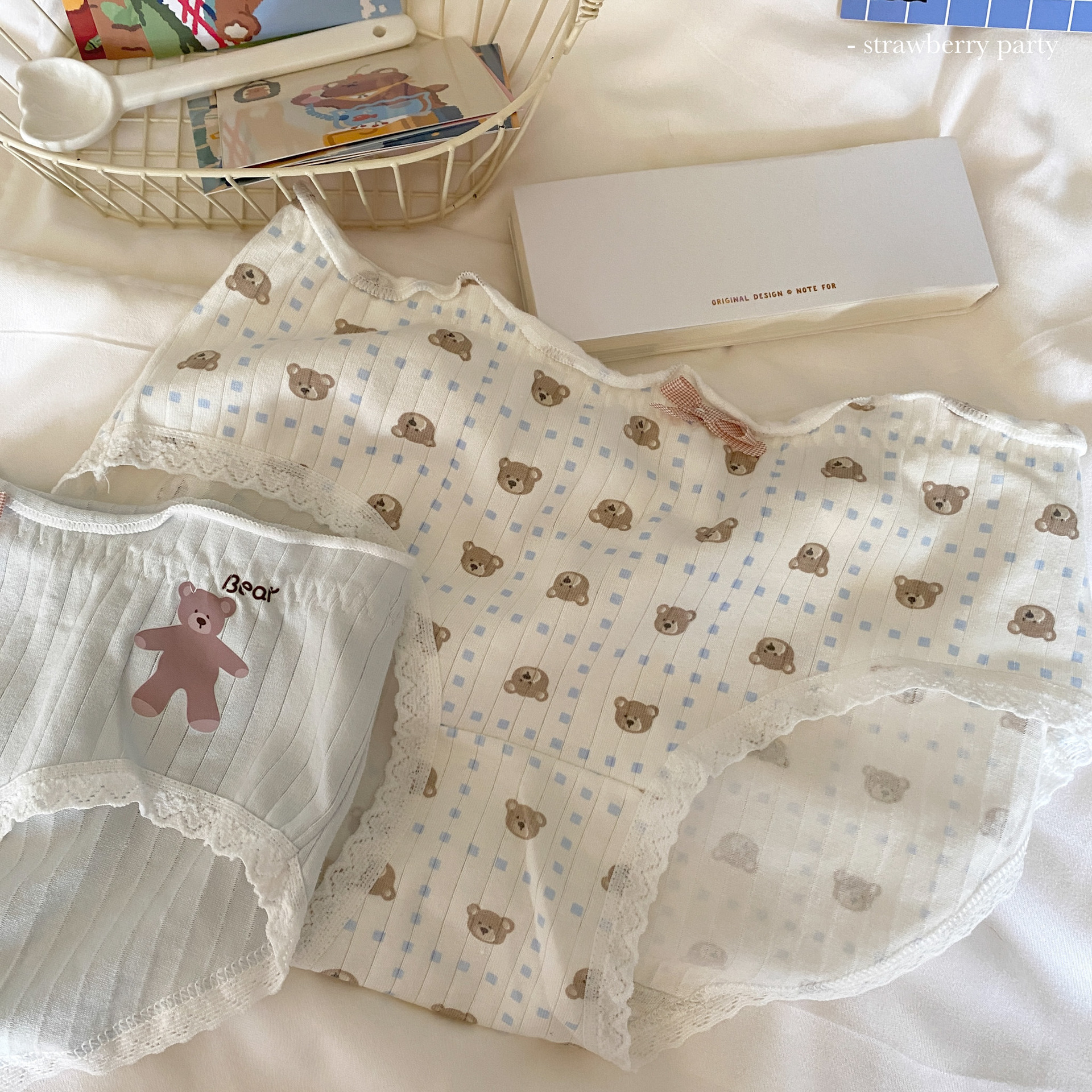부드러운 작은 아기곰~ 일본식 실면 속옷, 미드웨이스트, 귀여운 소녀 스타일 통기성 학생 팬티스토어 가기