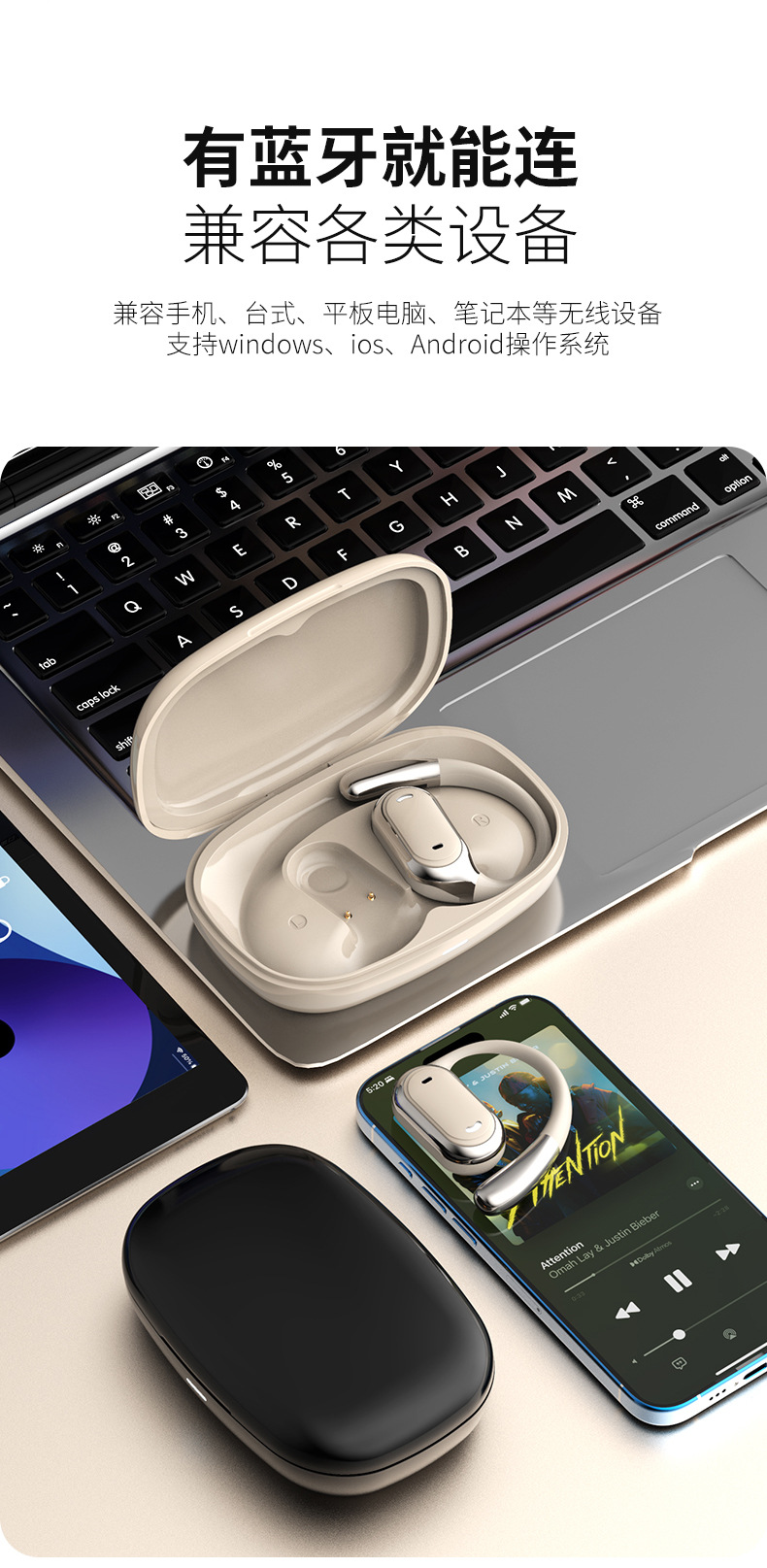 국경을 넘는 새로운 YW22 무선 블루투스 헤드셋 귀걸이 형 헤드셋 스마트 스포츠 러닝 긴 배터리 수명 헤드셋 소스 공장스토어 가기